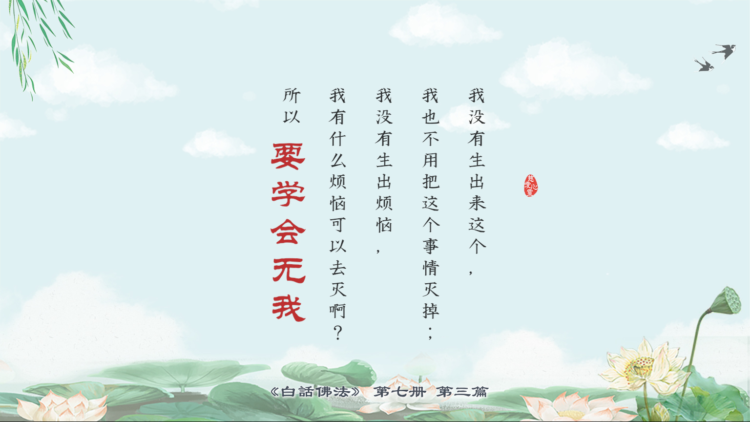 不限会员 7-3-31 我没有生出来这个,我也不用把这个事情灭掉;我没有生出烦恼,我有什么烦恼可以去灭啊?所以要学会无我。【图】