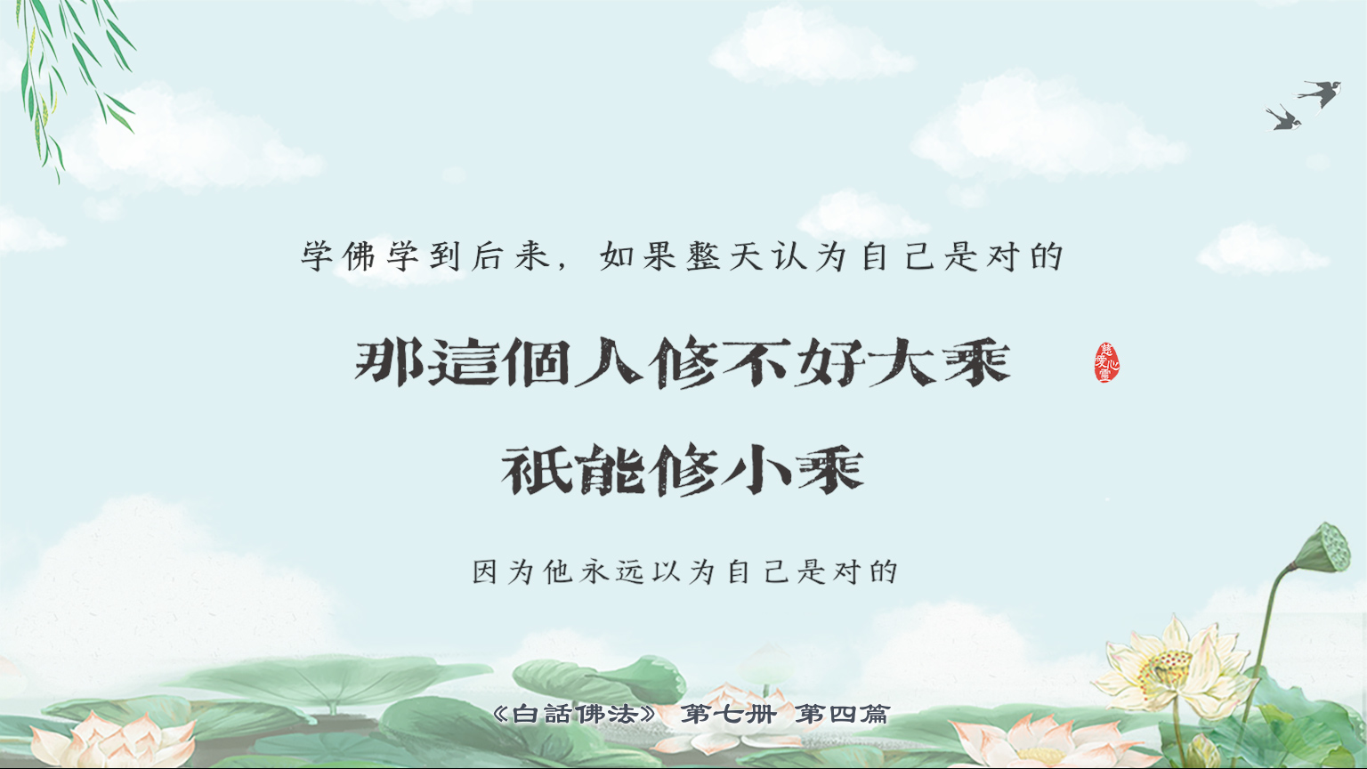 不限会员 7-4-4 学佛学到后来,如果整天认为自己是对的,那这个人修不好大乘只能修小乘,因为他永远以为自己是对的。【图】