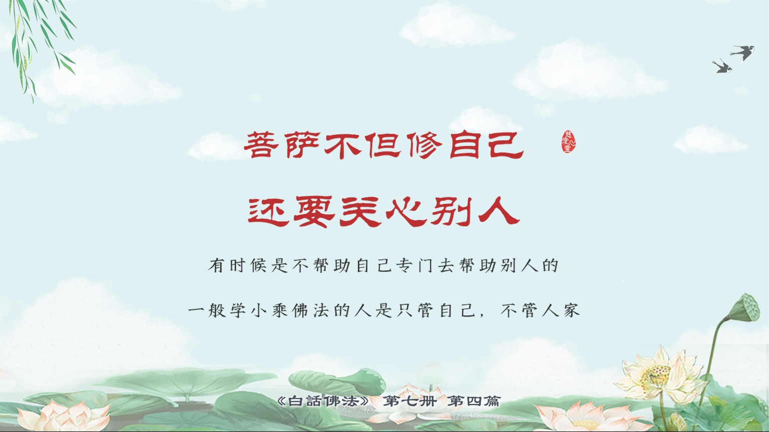 不限会员 7-4-9 菩萨不但修自己还要关心别人,有时候是不帮助自己专门去帮助别人的;一般学小乘佛法的人是只管自己,不管人家。【图】