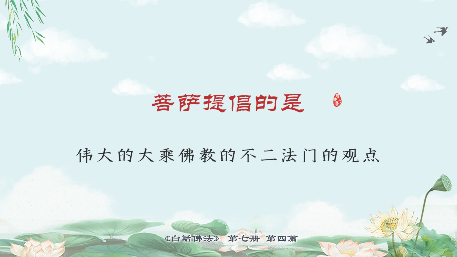 不限会员 7-4-10 菩萨提倡的是伟大的大乘佛教的不二法门的观点。【图】