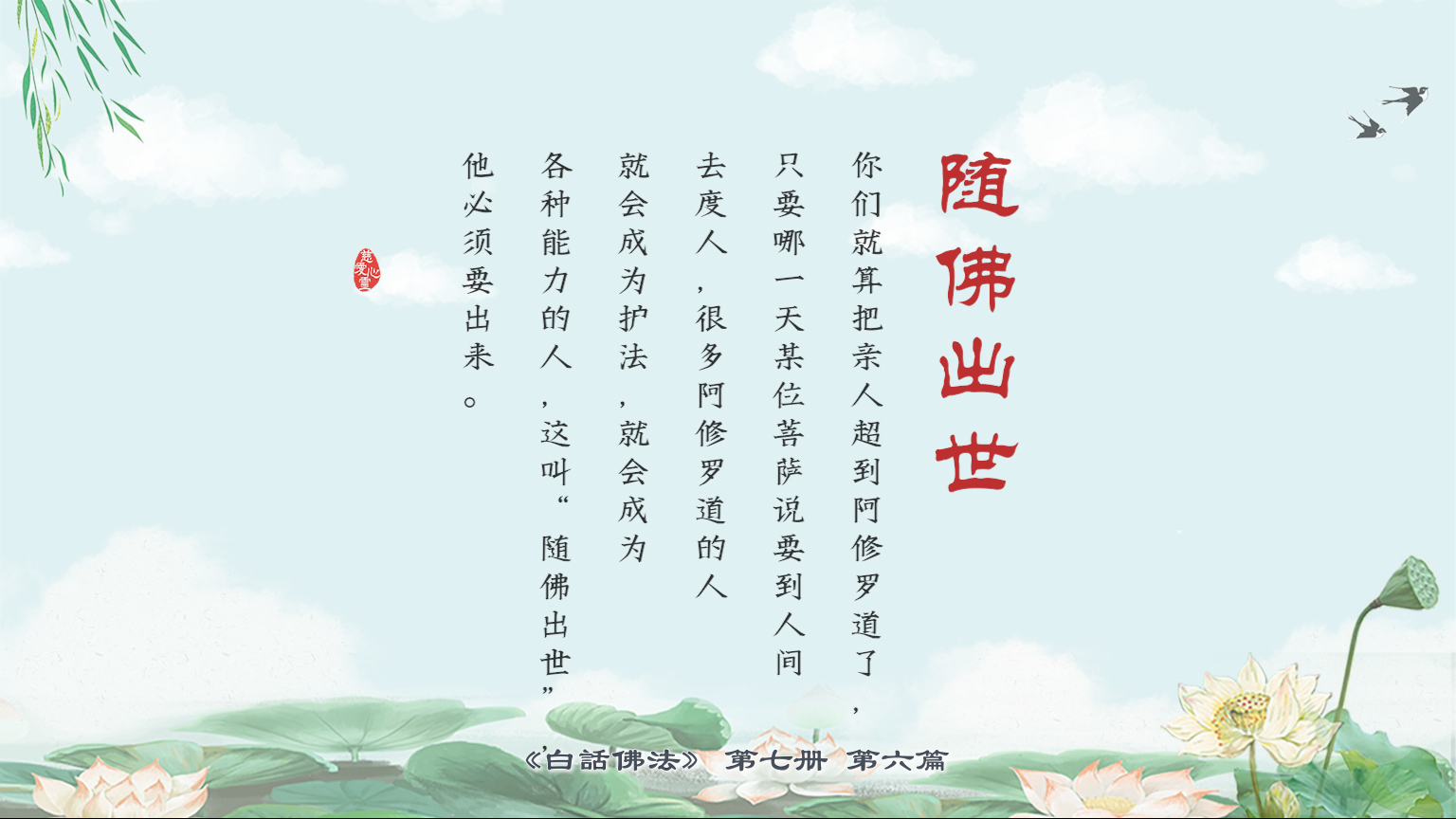 不限会员 7-6-35 就算把亲人超到阿修罗道了,只要哪一天某位菩萨说要到人间去度人,很多阿修罗道的人就会成为护法,就会成为各种能力的人,这叫“随佛出世”,他必须要出来。【图】
