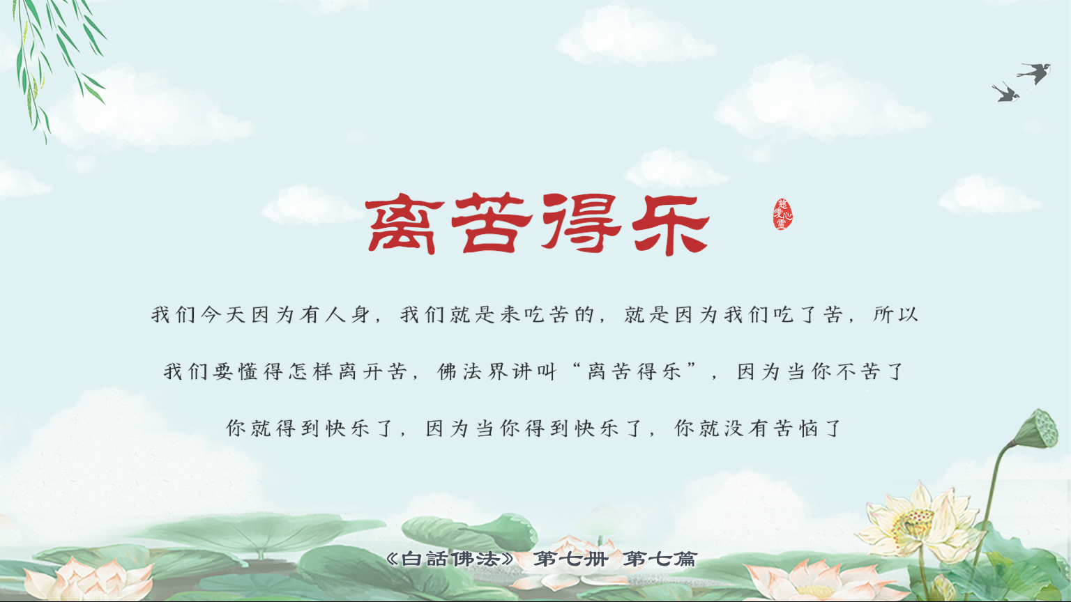不限会员 7-7-13我们今天因为有人身,我们就是来吃苦的...我们要懂得怎样离开苦,佛法界讲叫“离苦得乐”,因为当你不苦了,你就得到快乐了,因为当你得到快乐了,你就没有苦恼了。【图】