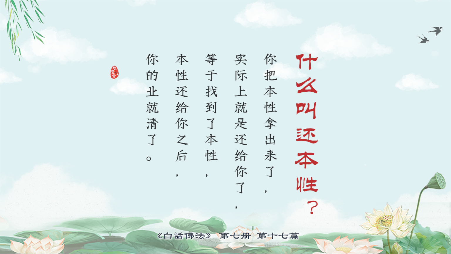 不限会员 7-17-11什么叫还本性?你把本性拿出来了,实际上就是还给你了,等于找到了本性,本性还给你之后,你的业就清了。【图】