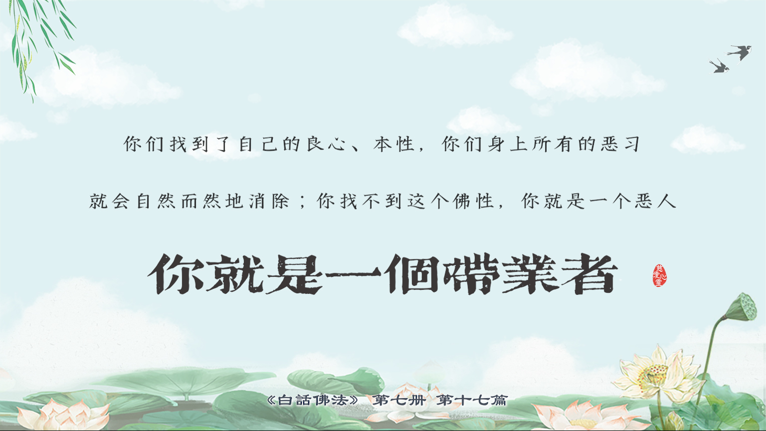 不限会员 7-17-12你们找到了自己的良心、本性,你们身上所有的恶习就会自然而然地消除;你找不到这个佛性,你就是一个恶人,你就是一个带业者。【图】