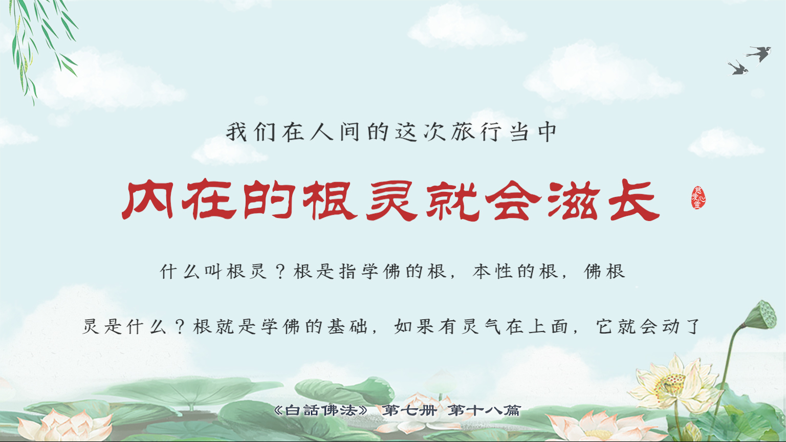 不限会员 7-18-23我们在人间的这次旅行当中,内在的根灵就会滋长。什么叫根灵?根是指学佛的根,本性的根,佛根。灵是什么?根就是学佛的基础,如果有灵气在上面,它就会动了。【图】