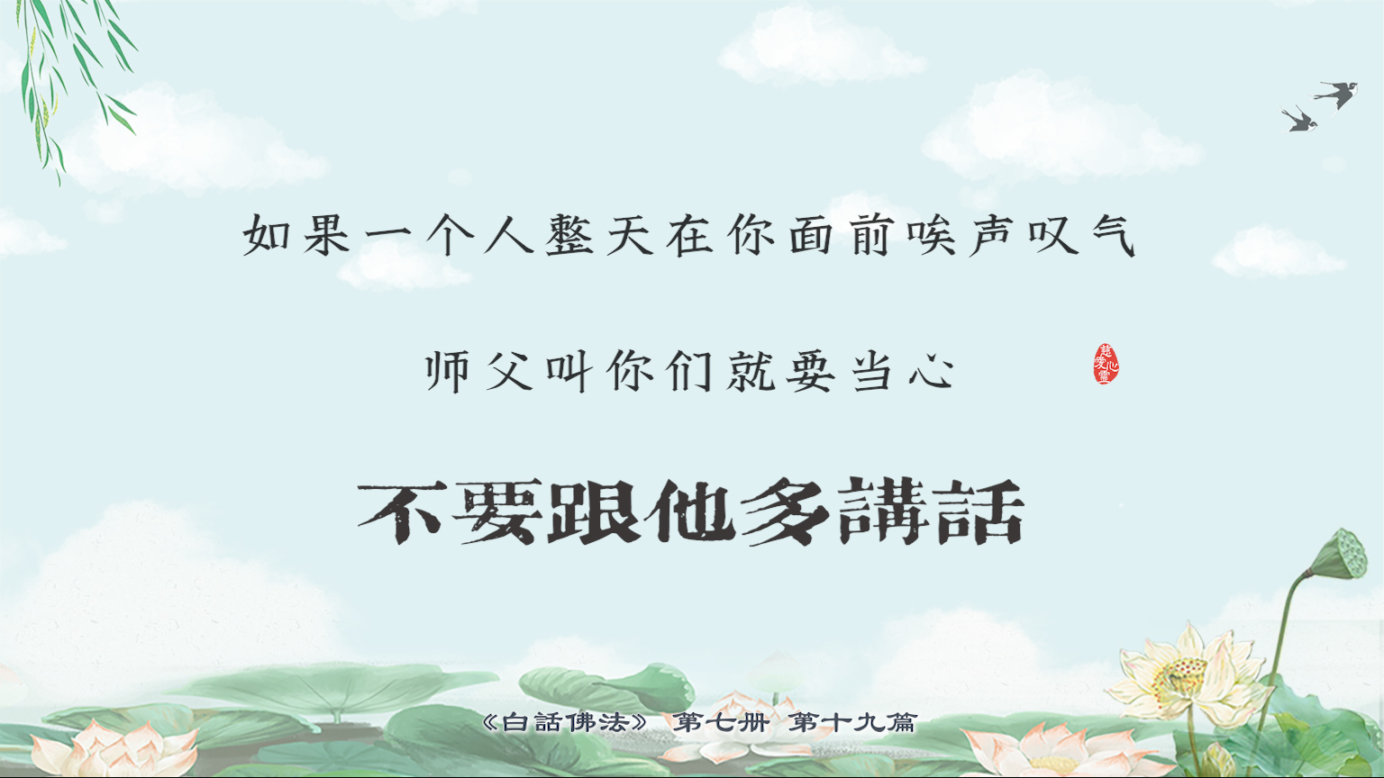 不限会员 7-19-11如果一个人整天在你面前唉声叹气,师父叫你们就要当心,不要跟他多讲话。【图】
