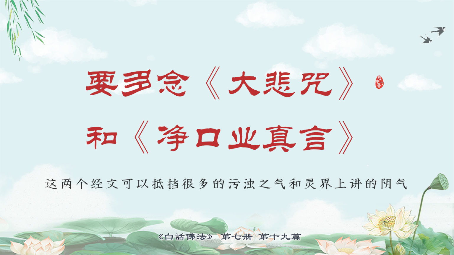 不限会员 7-19-12我们要多念《大悲咒》和《净口业真言》,这两个经文可以抵挡很多的污浊之气和灵界上讲的阴气。【图】