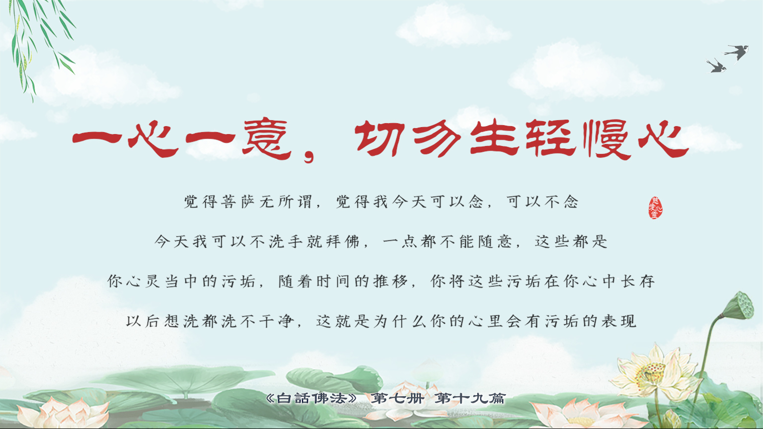 不限会员 7-19-18一心一意,切勿生轻慢心,觉得菩萨无所谓,觉得我今天可以念,可以不念,今天我可以不洗手就拜佛,一点都不能随意,这些都是你心灵当中的污垢,随着时间的推移【图】