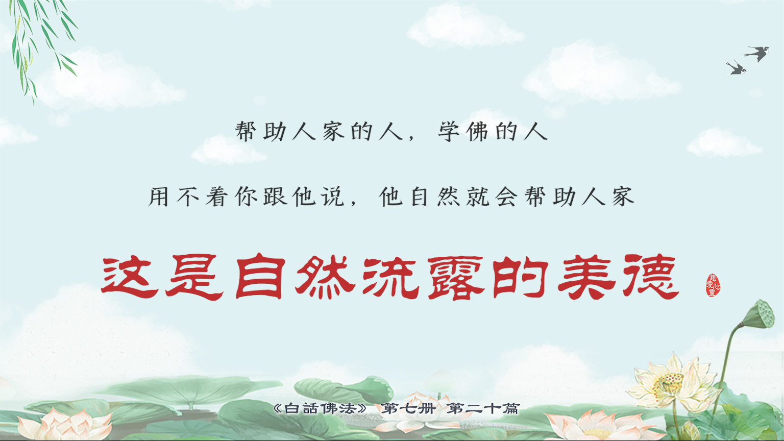 不限会员 7-20-15帮助人家的人,学佛的人,用不着你跟他说,他自然就会帮助人家,这是自然流露的美德。【图】