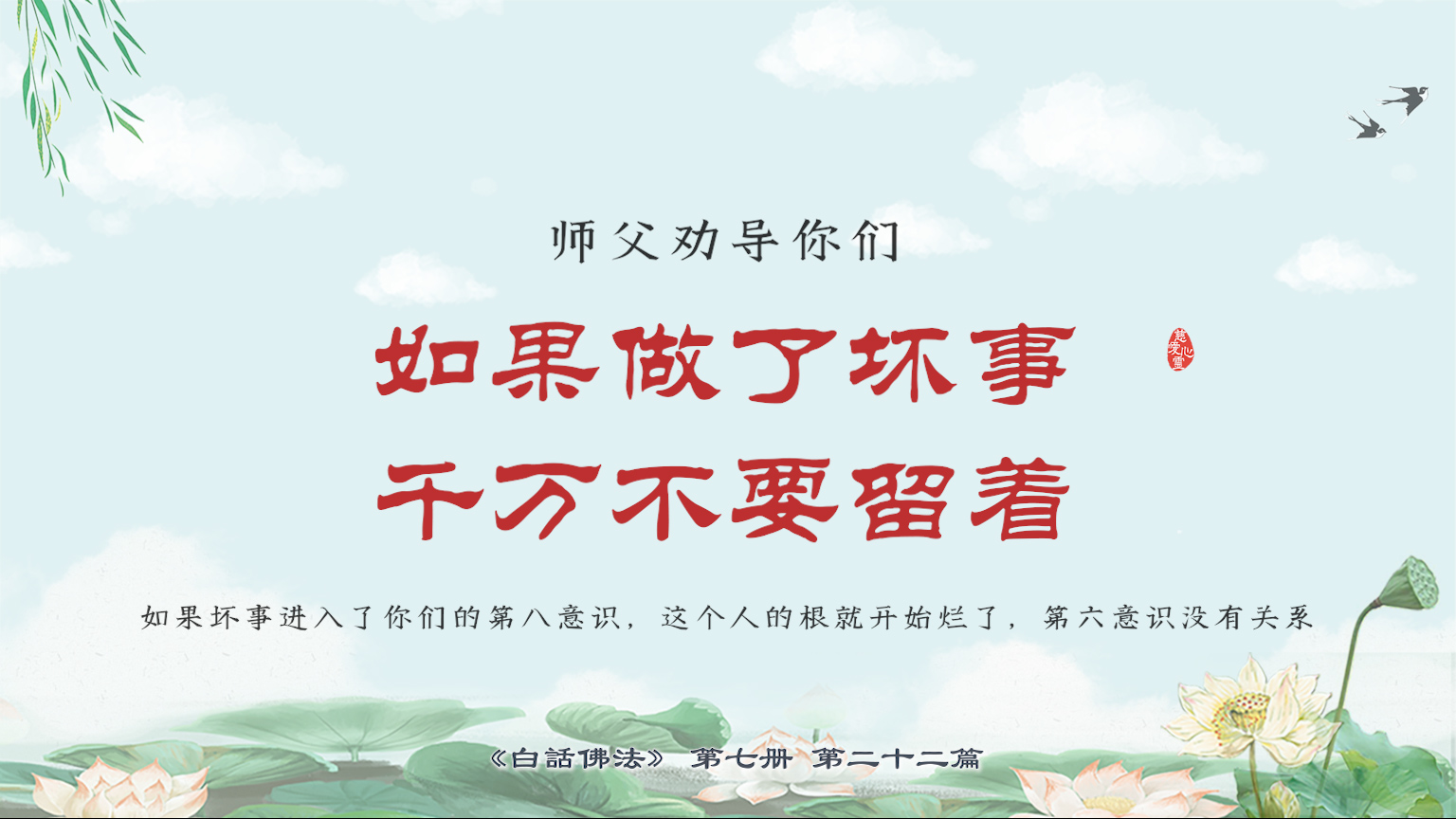 不限会员 7-22-3师父劝导你们如果做了坏事,千万不要留着,如果坏事进入了你们的第八意识,这个人的根就开始烂了,第六意识没有关系。【图】