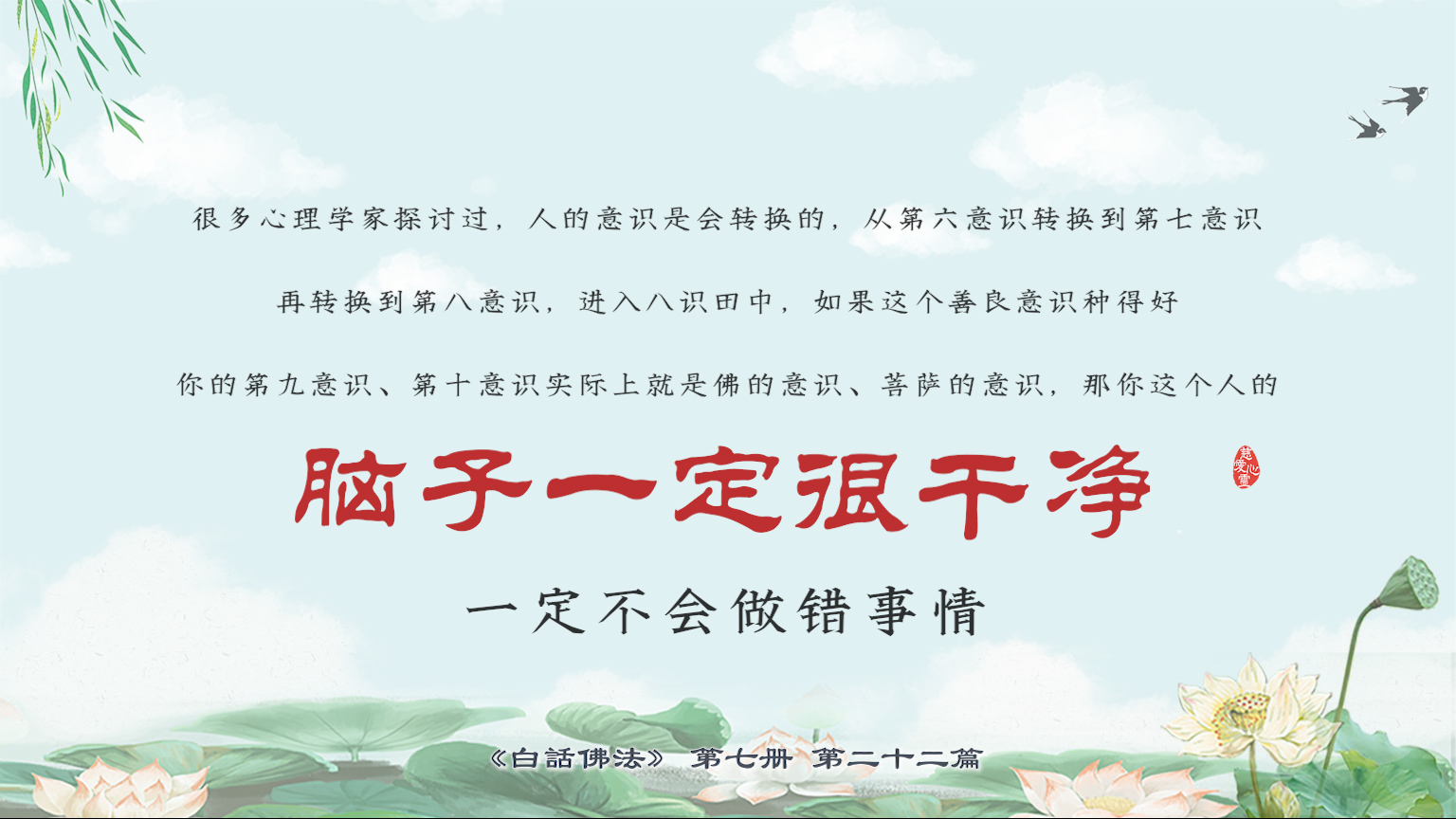 不限会员 7-22-7很多心理学家探讨过,人的意识是会转换的,从第六意识转换到第七意识,再转换到第八意识,进入八识田中,如果这个善良意识种得好,你的第九意识、第十意识实际上【图】