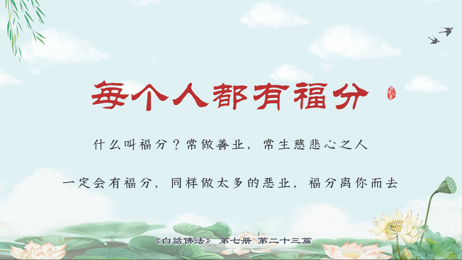 不限会员 7-23-18每个人都有福分,什么叫福分?常做善业,常生慈悲心之人,一定会有福分,同样做太多的恶业,福分离你而去。【图】