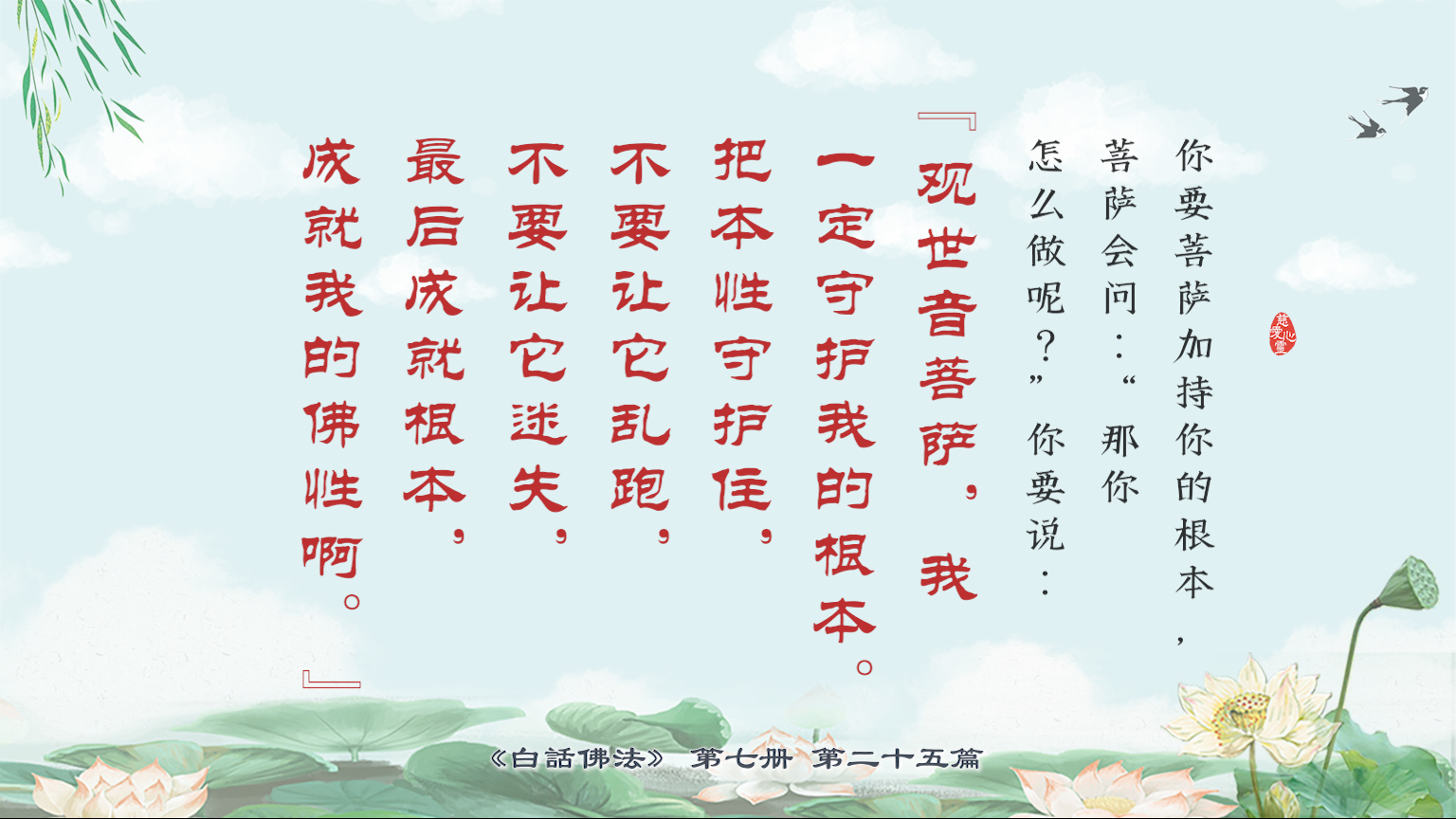 不限会员 7-25-19你要菩萨加持你的根本,菩萨会问:“那你怎么做呢?”你要说:“观世音菩萨,我一定守护我的根本。把本性守护住,不要让它乱跑,不要让它迷失,最后成就根本【图】