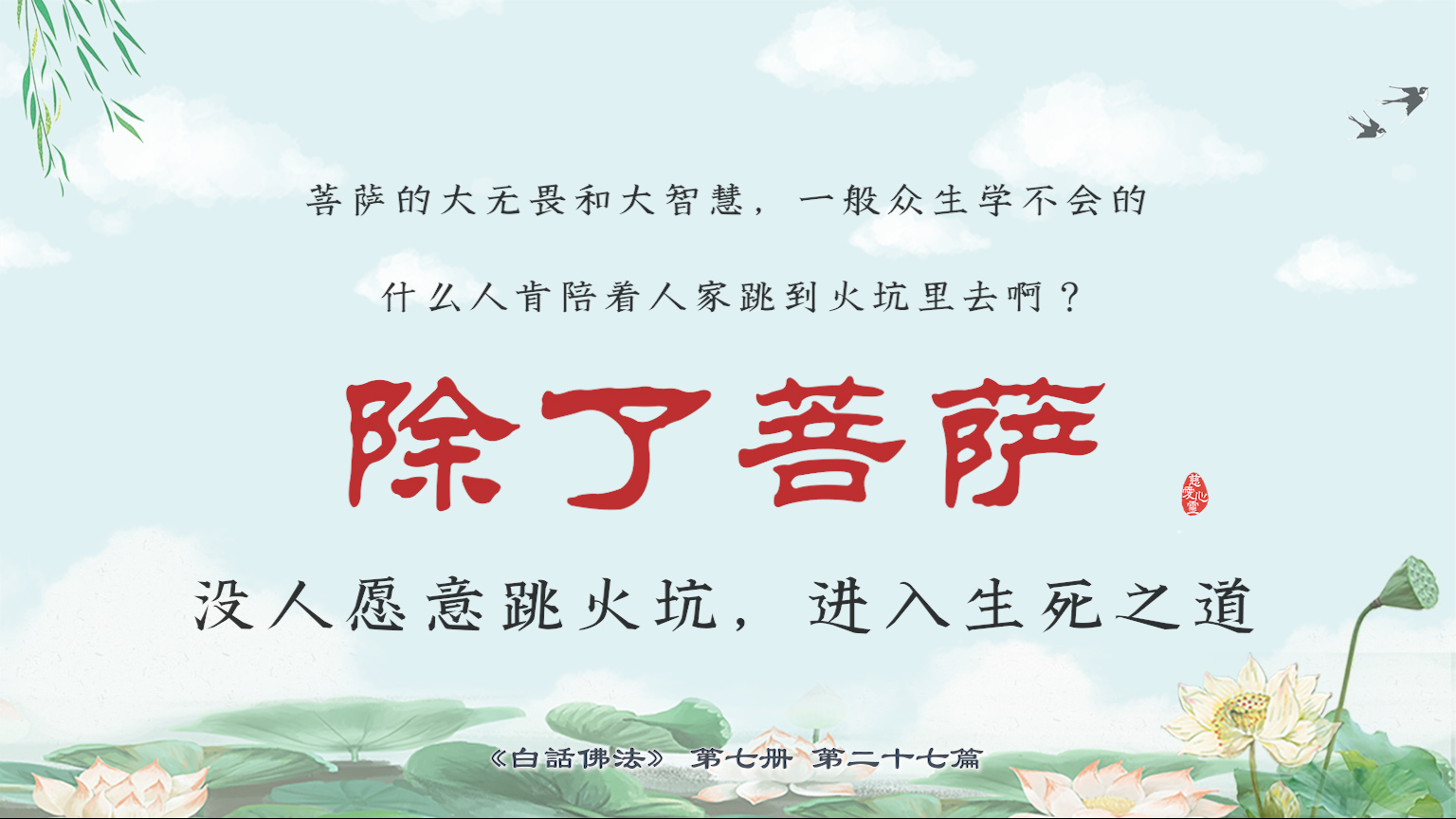 不限会员 7-27-4菩萨的大无畏和大智慧,一般众生学不会的,什么人肯陪着人家跳到火坑里去啊?除了菩萨,没人愿意跳火坑,进入生死之道。【图】