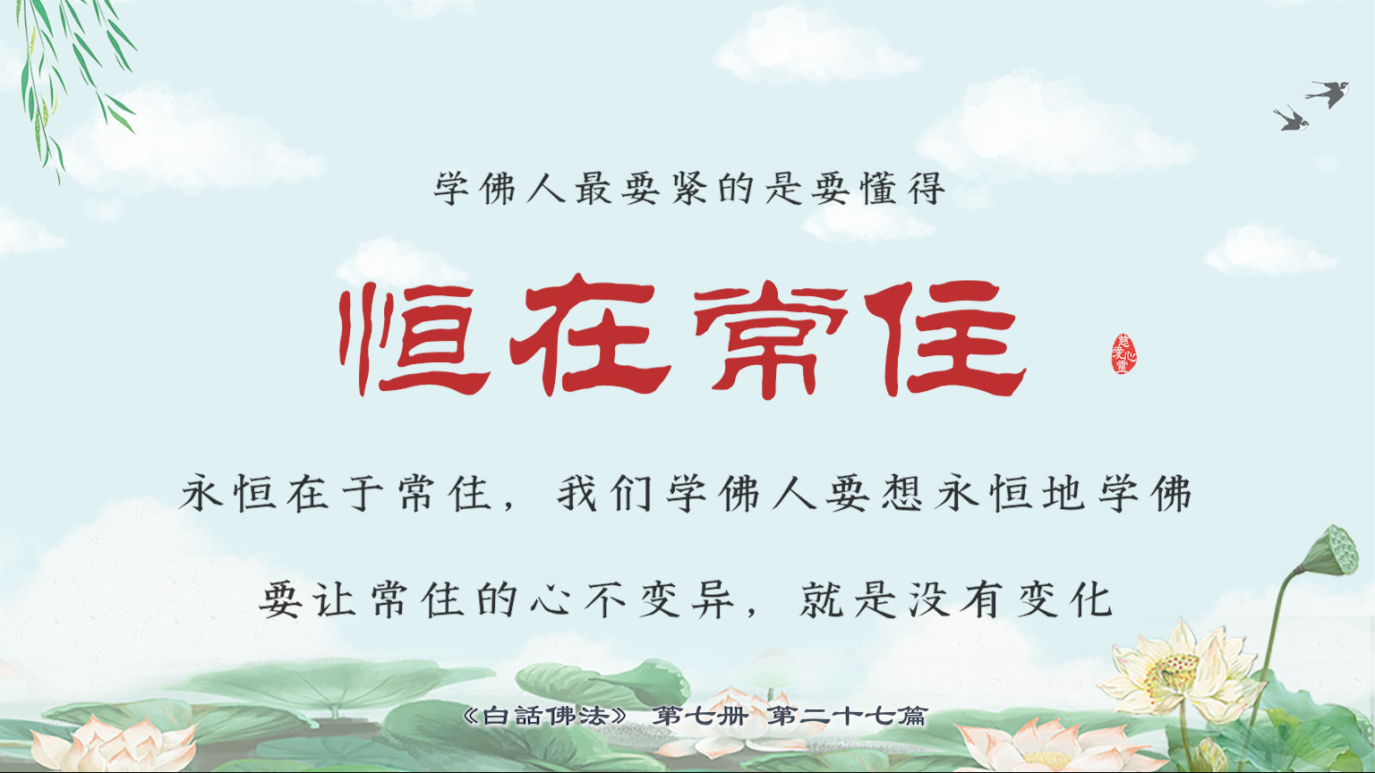 不限会员 7-27-15学佛人最要紧的是要懂得恒在常住,永恒在于常住,我们学佛人要想永恒地学佛,要让常住的心不变异,就是没有变化。【图】