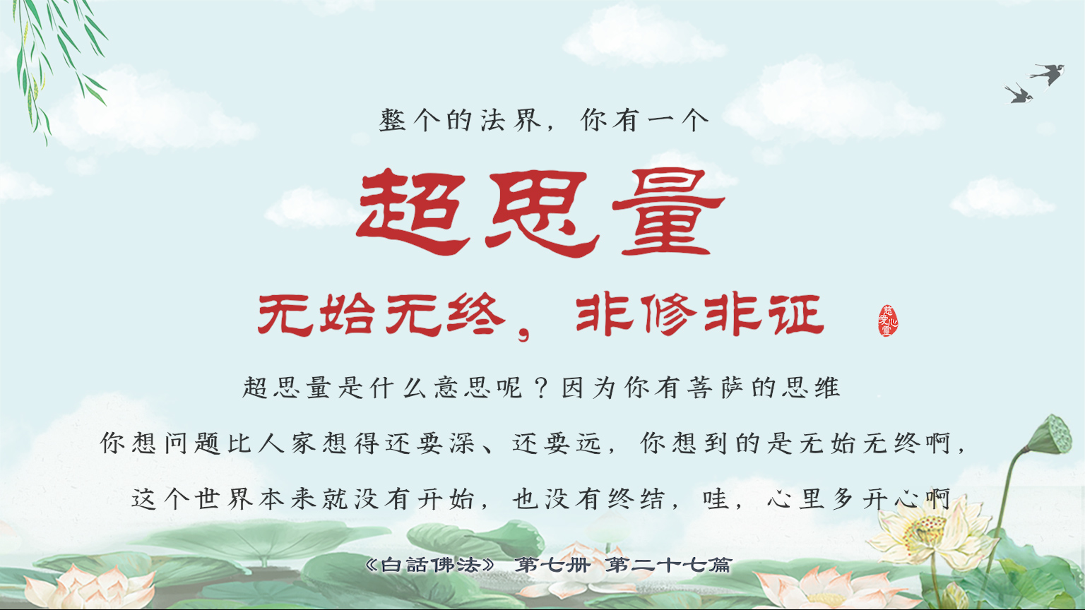 不限会员 7-27-19整个的法界,你有一个超思量,无始无终,非修非证。超思量是什么意思呢?因为你有菩萨的思维,你想问题比人家想得还要深、还要远,你想到的是无始无终啊【图】