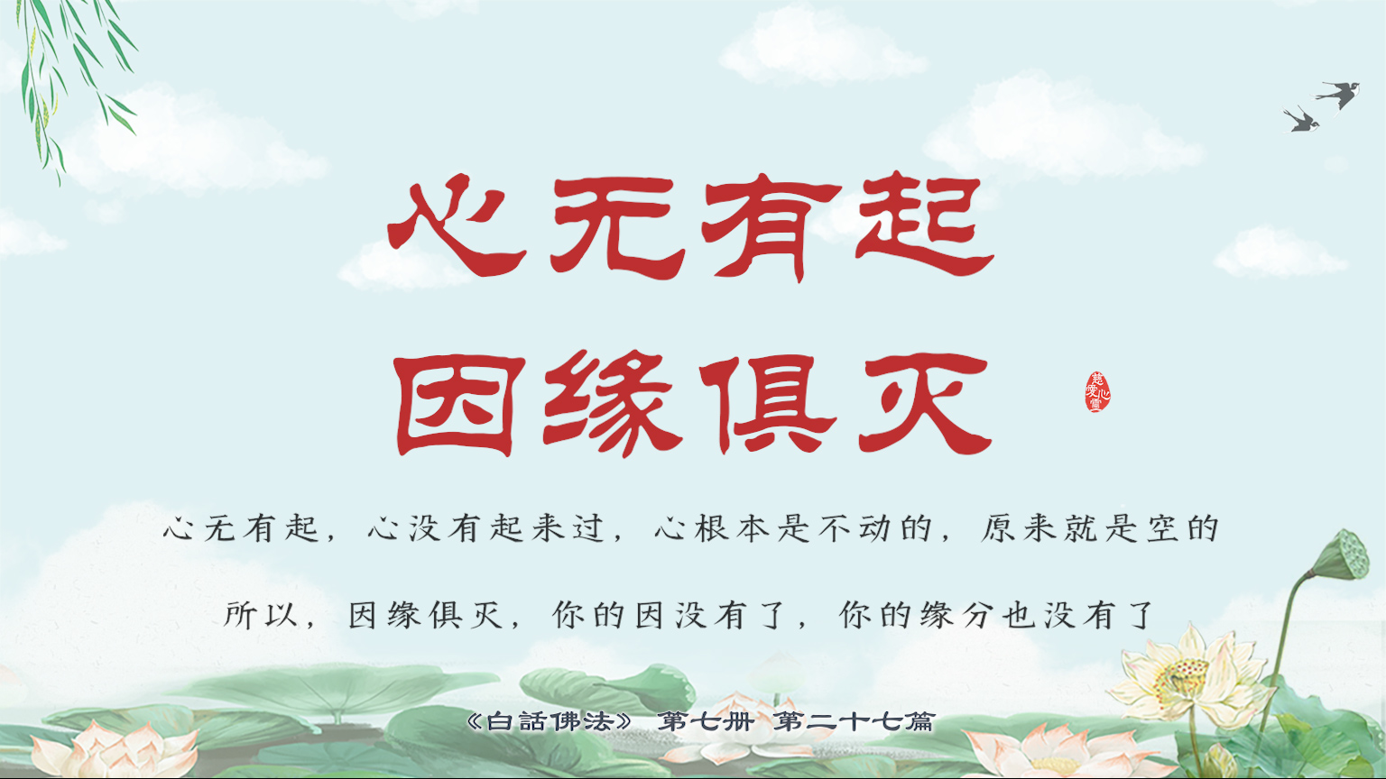 不限会员 7-27-29心无有起,心没有起来过,心根本是不动的,原来就是空的,所以,因缘俱灭,你的因没有了,你的缘分也没有了。【图】