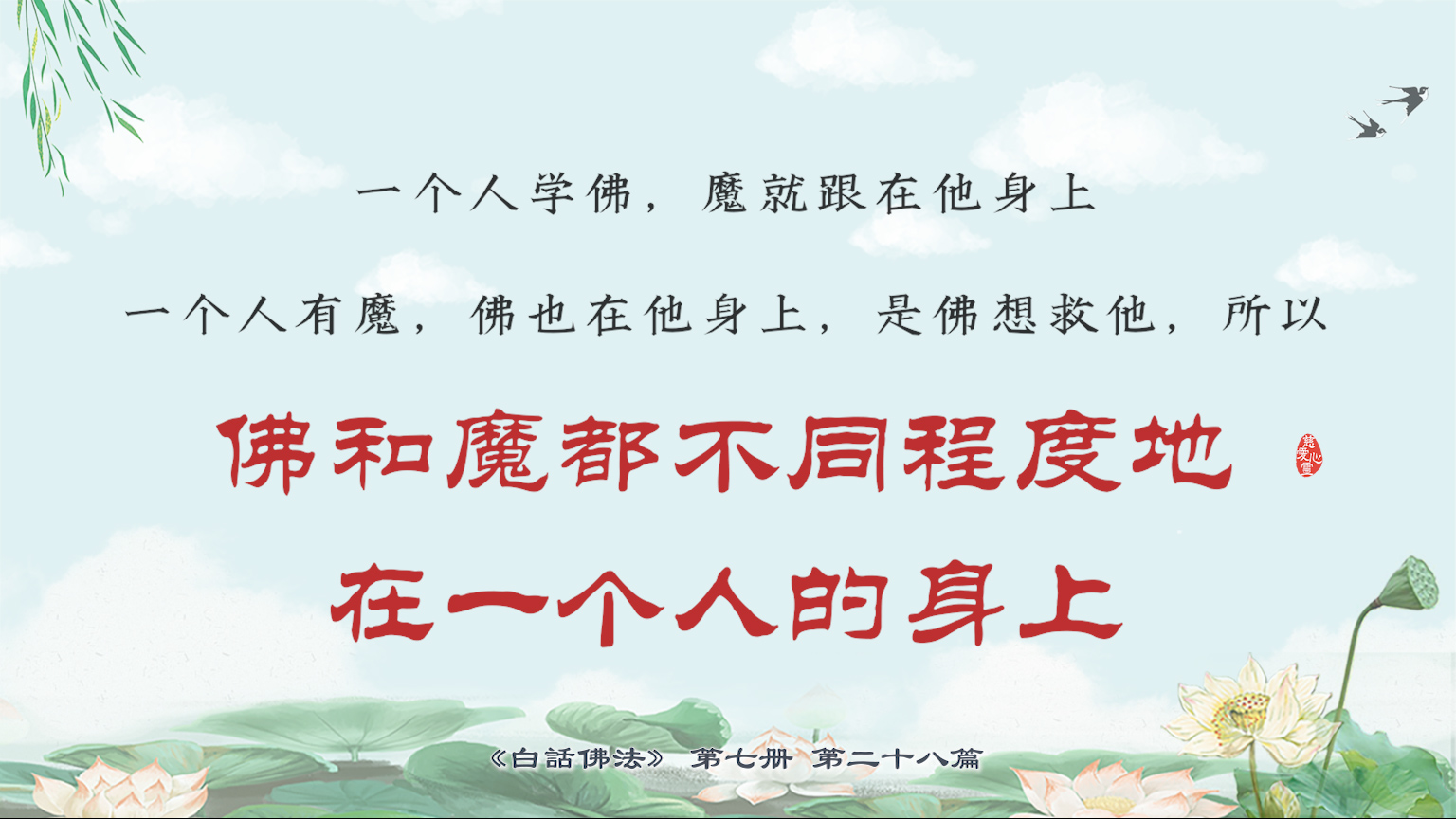 不限会员 7-28-8 一个人学佛,魔就跟在他身上,一个人有魔,佛也在他身上,是佛想救他,所以,佛和魔都不同程度地在一个人的身上。【图】