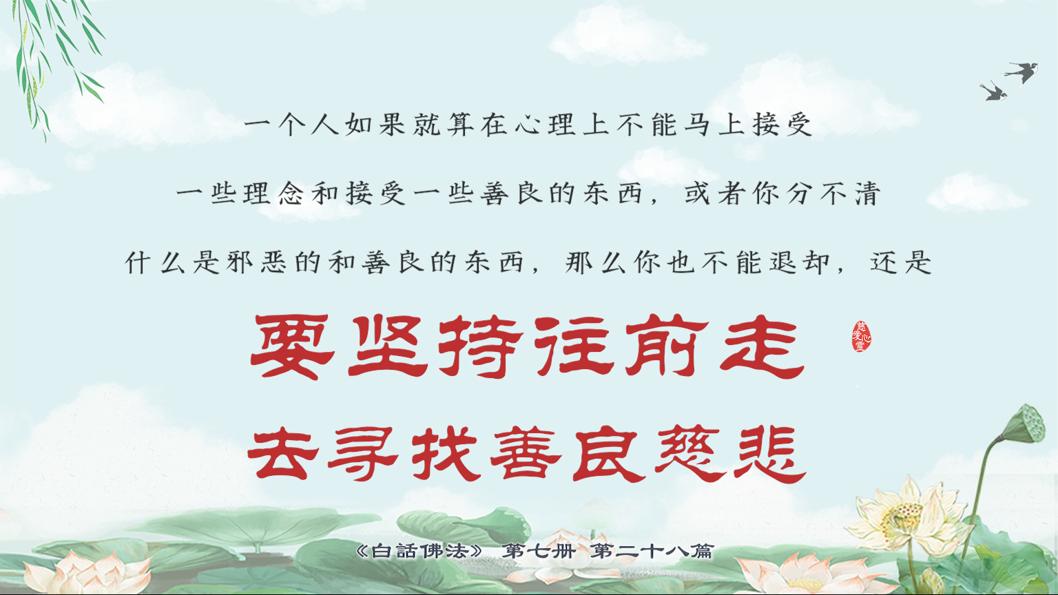 不限会员 7-28-15一个人如果就算在心理上不能马上接受一些理念和接受一些善良的东西,或者你分不清什么是邪恶的和善良的东西,那么你也不能退却,还是要坚持往前走,去寻找善良慈悲。【图】