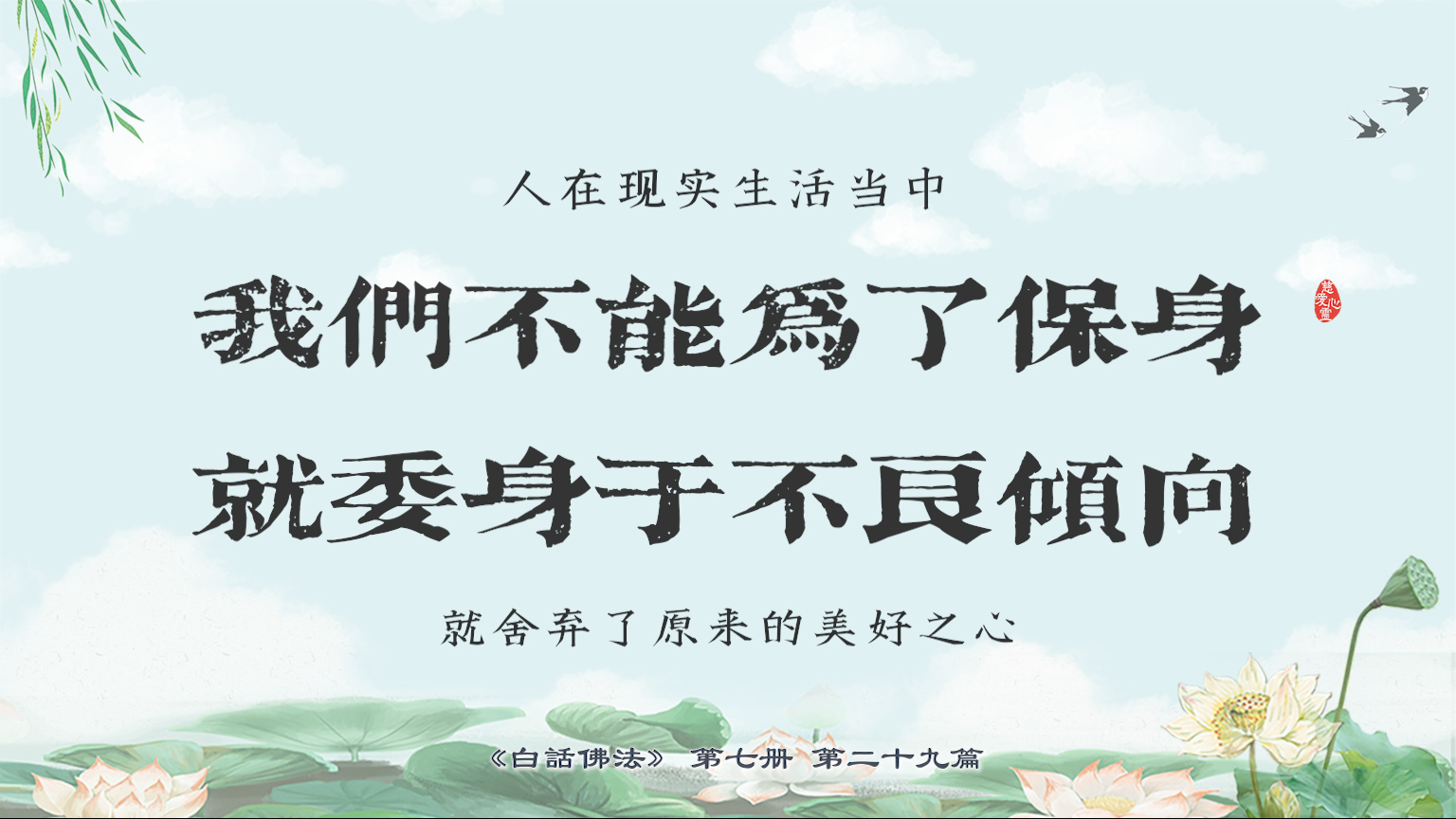 不限会员 7-29-7 人在现实生活当中,我们不能为了保身,就委身于不良倾向,就舍弃了原来的美好之心。【图】