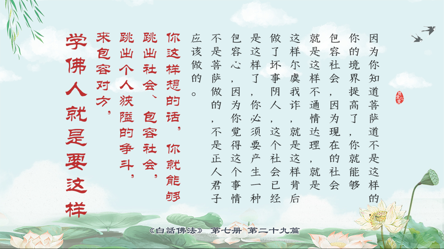 不限会员 7-29-16你知道菩萨道不是这样的,你的境界提高了...能够包容社会...现在的社会就是这样不通情达理...尔虞我诈,就是这样背后做了坏事阴人...你必须要产生一种包容心...学佛人就是要这样。【图】