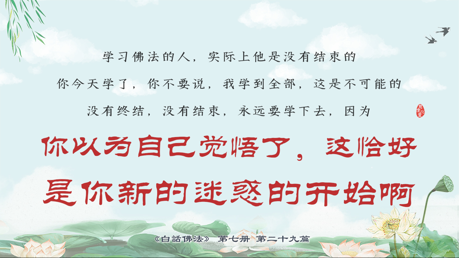 不限会员 7-29-26学习佛法的人...他是没有结束的,你今天学了,你不要说,我学到全部,这是不可能的,没有终结,没有结束,永远要学下去,因为你以为自己觉悟了,这恰好是你新的迷惑的开始啊。【图】