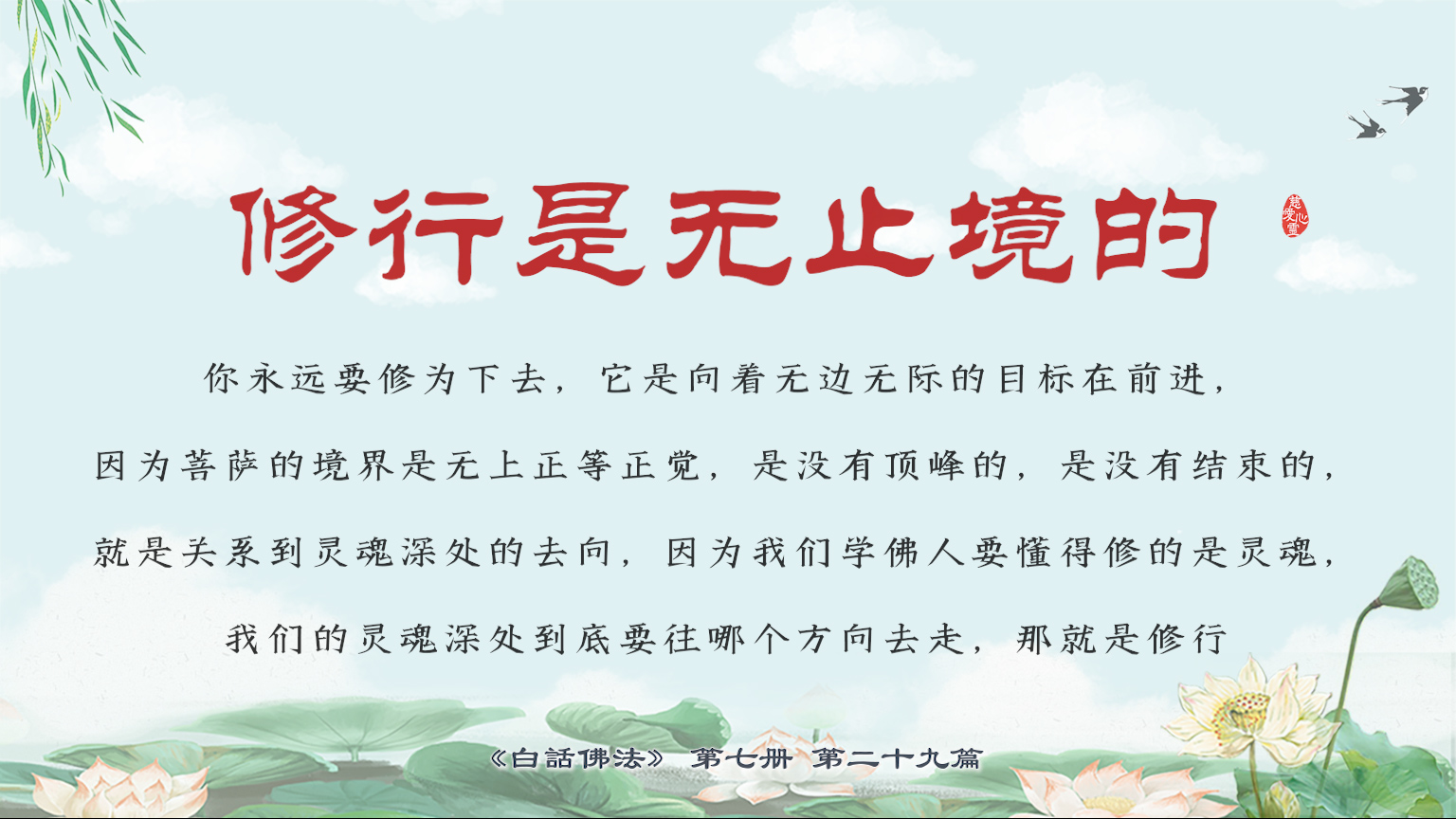 不限会员 7-29-31修行是无止境的...菩萨的境界是无上正等正觉,是没有顶峰的...就是关系到灵魂深处的去向,因为我们学佛人要懂得修的是灵魂,我们的灵魂深处到底要往哪个方向去走,那就是修行。【图】