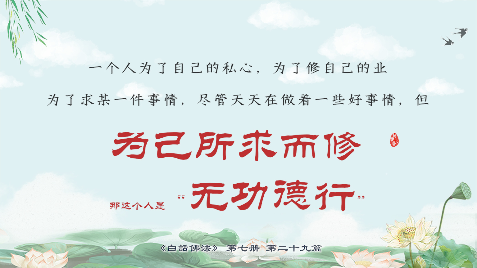 不限会员 7-29-37 一个人为了自己的私心,为了修自己的业,为了求某一件事情,尽管天天在做着一些好事情,但为己所求而修,那这个人是“无功德行”。【图】