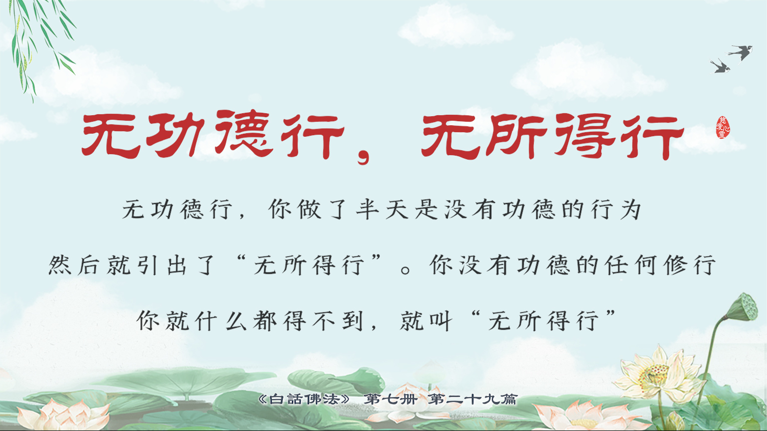 不限会员 7-29-38 无功德行,你做了半天是没有功德的行为,然后就引出了“无所得行”。你没有功德的任何修行,你就什么都得不到,就叫“无所得行”。【图】