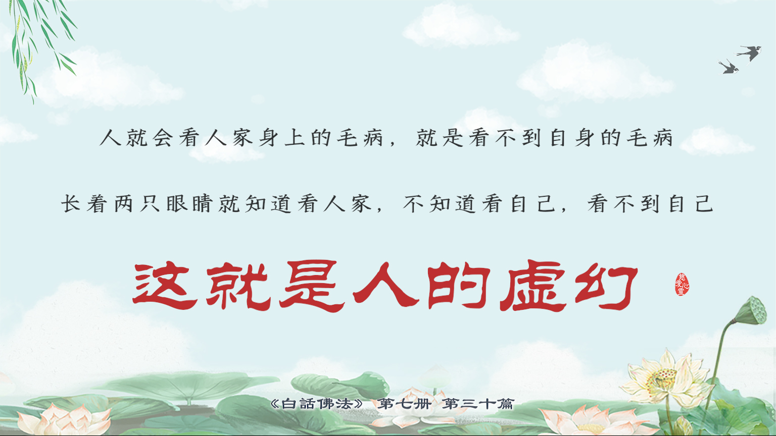不限会员 7-30-29 人就会看人家身上的毛病,就是看不到自身的毛病,长着两只眼睛就知道看人家,不知道看自己,看不到自己,这就是人的虚幻。【图】