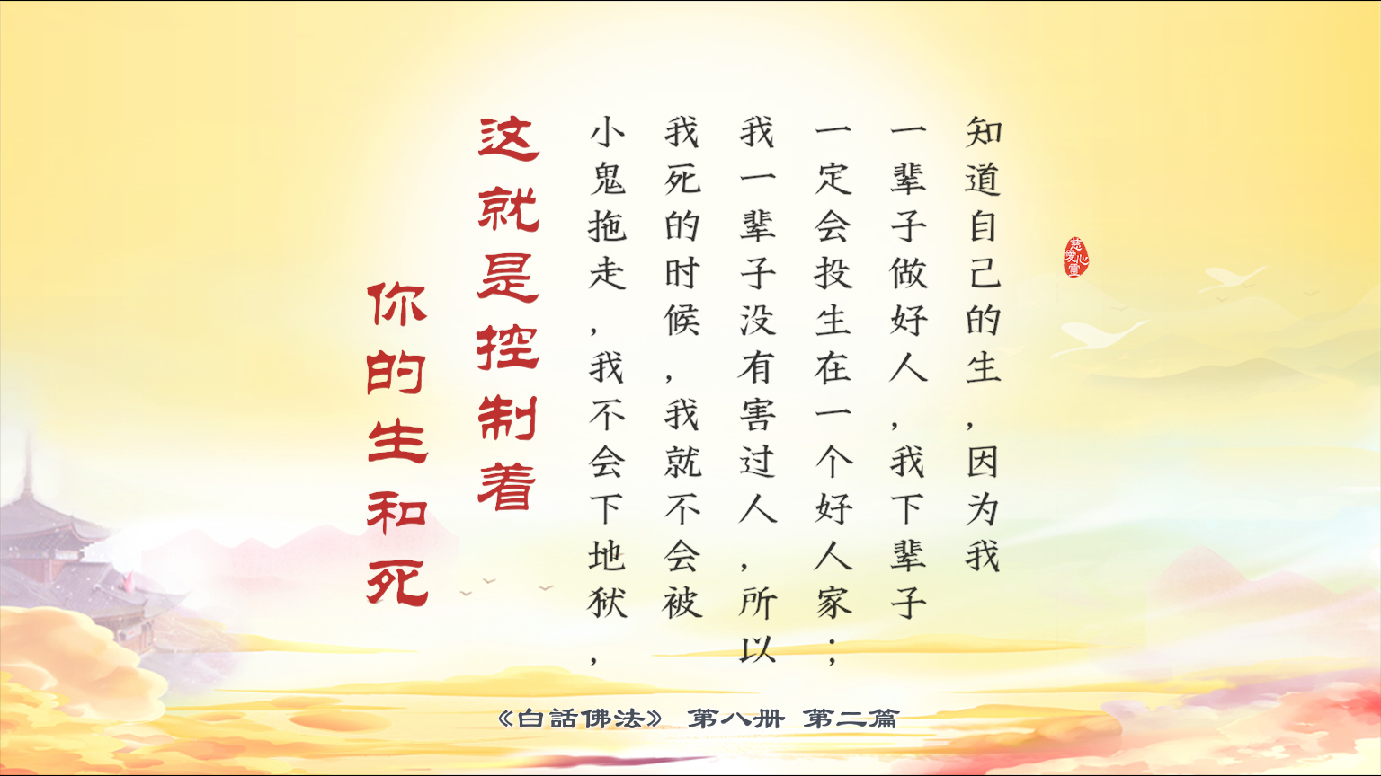 不限会员 8-2-21知道自己的生,因为我一辈子做好人,我下辈子一定会投生在一个好人家;我一辈子没有害过人,所以我死的时候,我就不会被小鬼拖走,我不会下地狱,这就是控制着你的生和死【图】