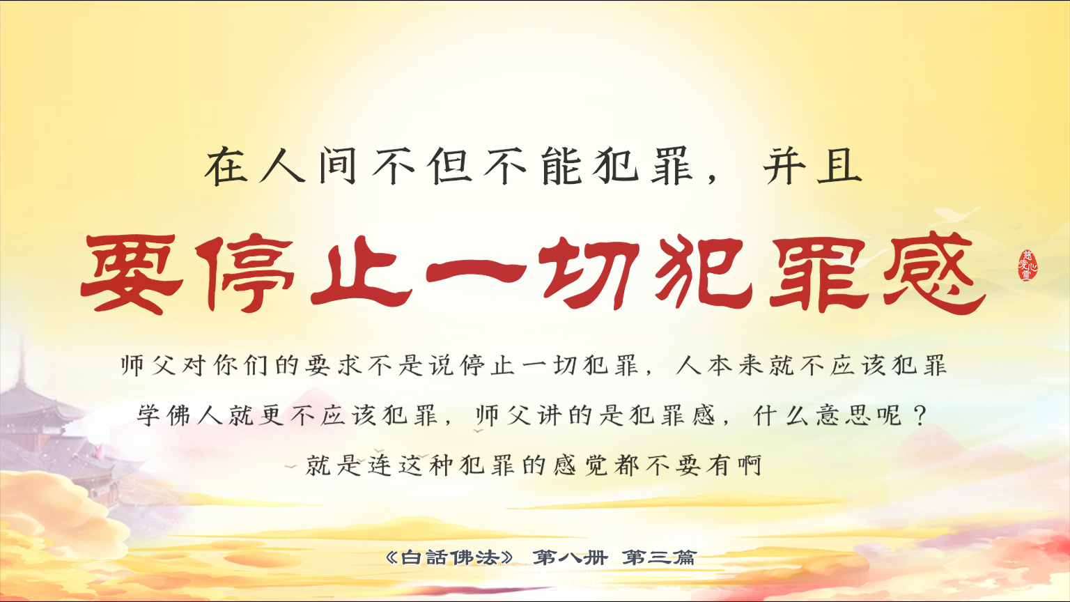 不限会员 8-3-5在人间不但不能犯罪要停止一切犯罪感,师父对你们的要求不是说停止一切犯罪,人本来就不应该犯罪学佛人就更不应该犯罪,师父讲的是犯罪感...就是连这种犯罪的感觉都不要有啊【图】