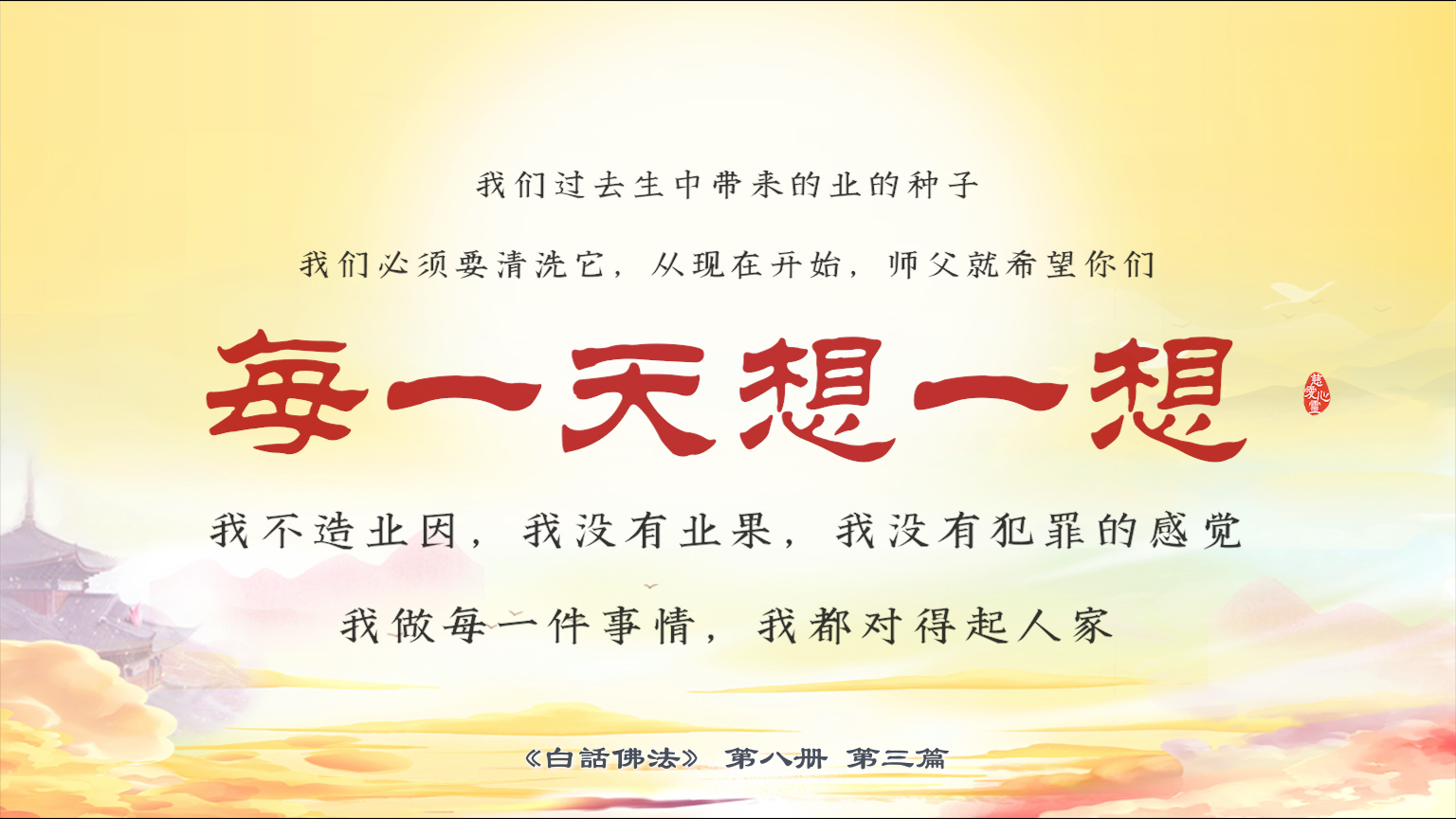 不限会员 8-3-9我们过去生中带来的业的种子,我们必须要清洗它...师父就希望你们每一天想一想:我不造业因,我没有业果,我没有犯罪的感觉,我做每一件事情,我都对得起人家。【图】
