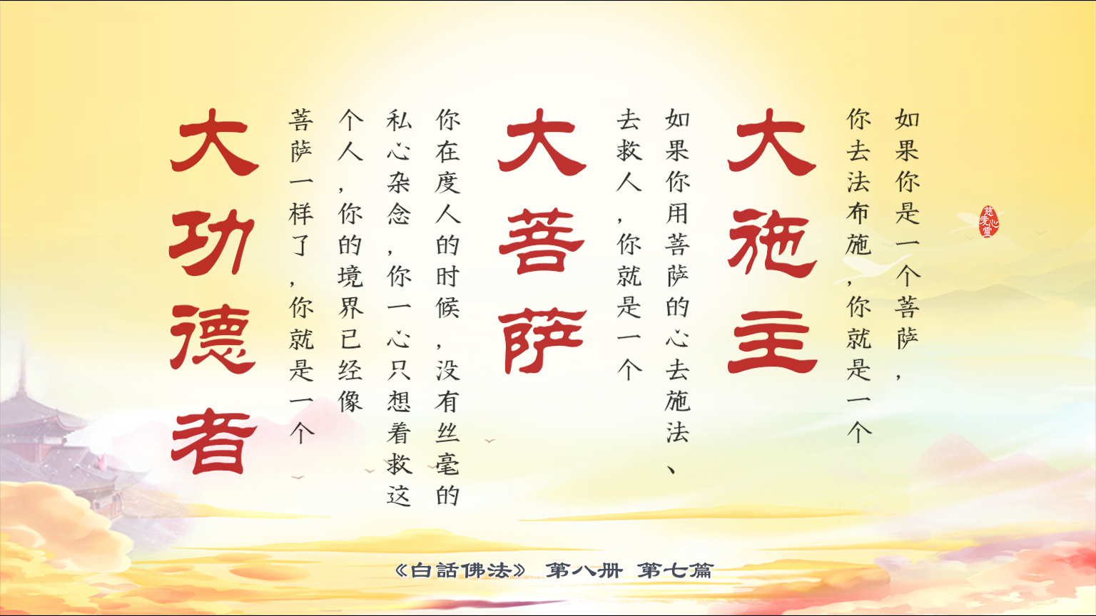 不限会员 8-7-2如果你是一个菩萨,你去法布施,你就是一个大施主;如果你用菩萨的心去施法...度人的时候,没有丝毫的私心杂念...你的境界已经像菩萨一样了,你就是一个大功德者。【图】