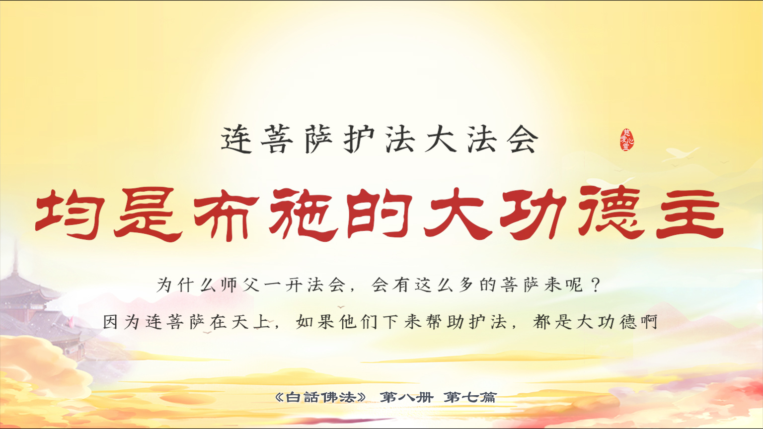 不限会员 8-7-3 连菩萨护法大法会,均是布施的大功德主。为什么师父一开法会,会有这么多的菩萨来呢?因为连菩萨在天上,如果他们下来帮助护法,都是大功德啊。【图】