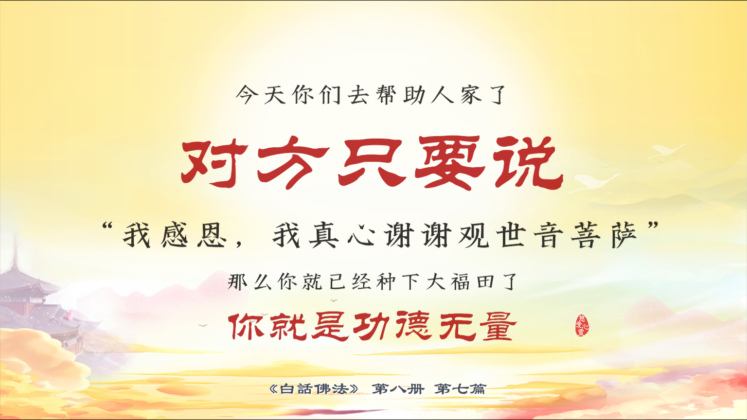 不限会员 8-7-8 今天你们去帮助人家了,对方只要说“我感恩,我真心谢谢观世音菩萨”,那么你就已经种下大福田了,你就是功德无量。【图】