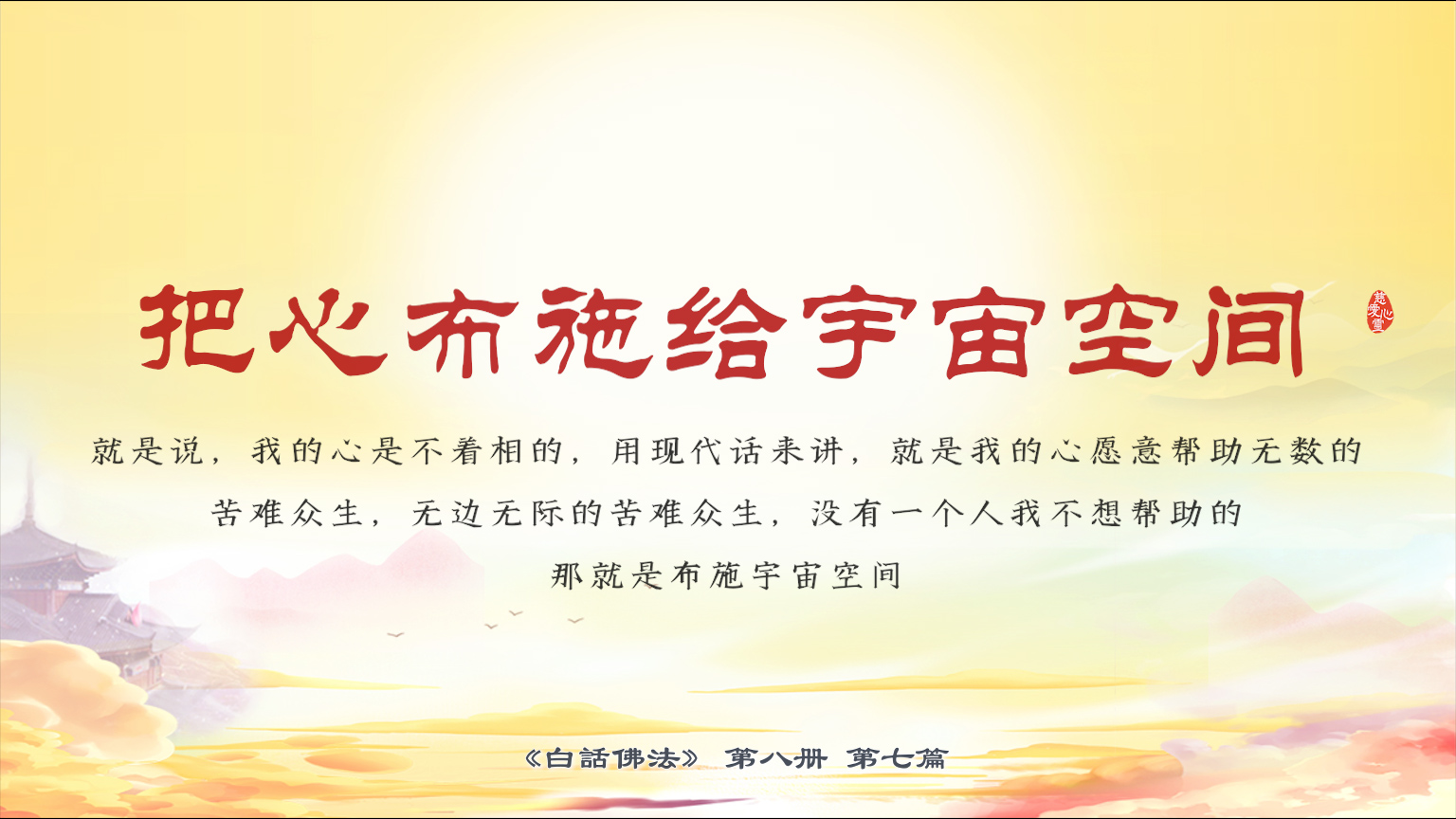 不限会员 8-7-14把心布施给宇宙空间,就是说,我的心是不着相的,用现代话来讲,就是我的心愿意帮助无数的苦难众生,无边无际的苦难众生,没有一个人我不想帮助的,那就是布施宇宙空间。【图】