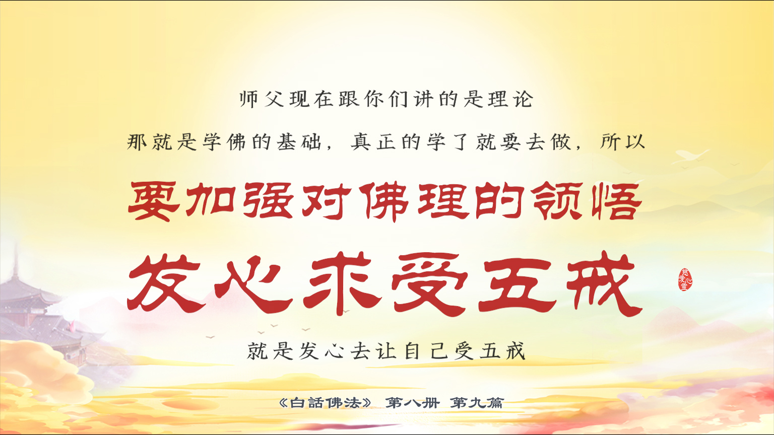 不限会员 8-9-16 师父现在跟你们讲的是理论,那就是学佛的基础,真正的学了就要去做,所以,要加强对佛理的领悟,发心求受五戒,就是发心去让自己受五戒。【图】
