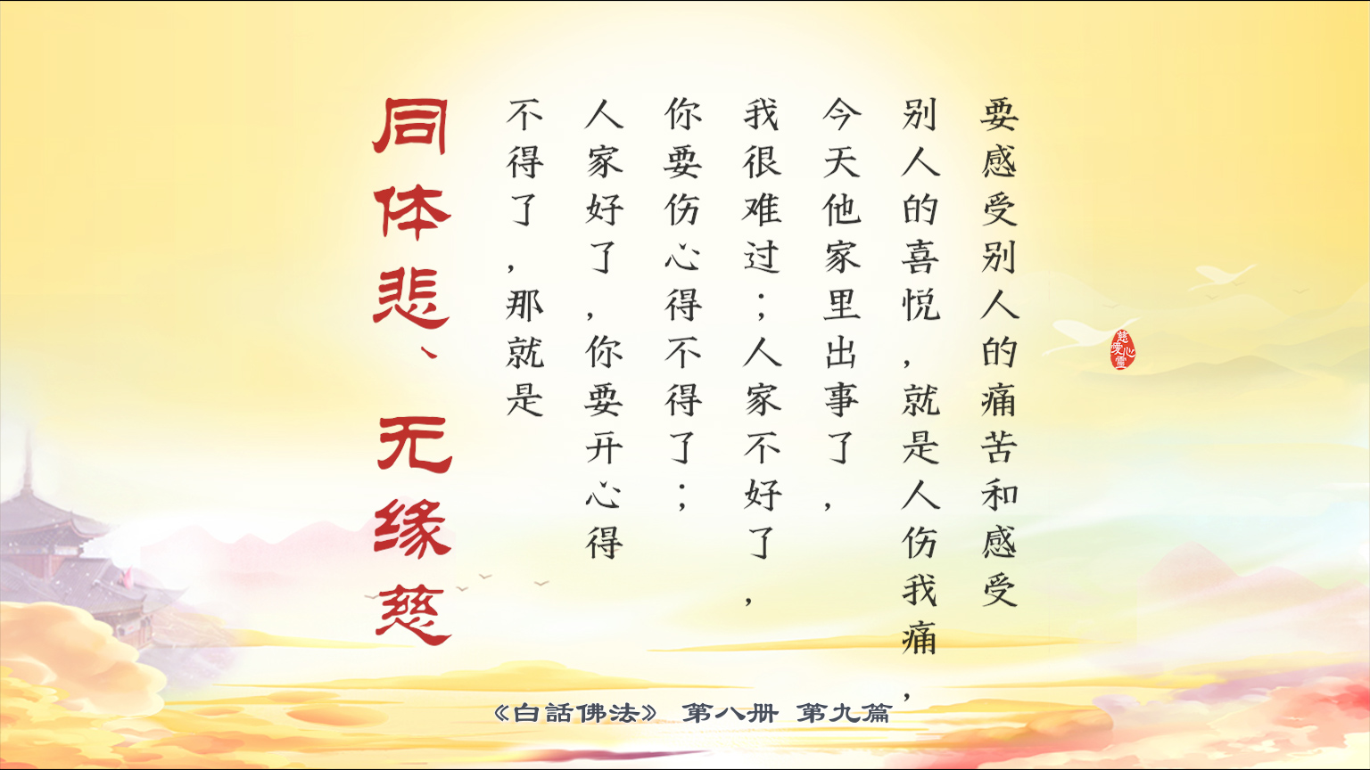 不限会员 8-9-27 要感受别人的痛苦和感受别人的喜悦,就是人伤我痛,今天他家里出事了,我很难过;人家不好了,你要伤心得不得了;人家好了,你要开心得不得了,那就是同体悲、无缘慈。【图】