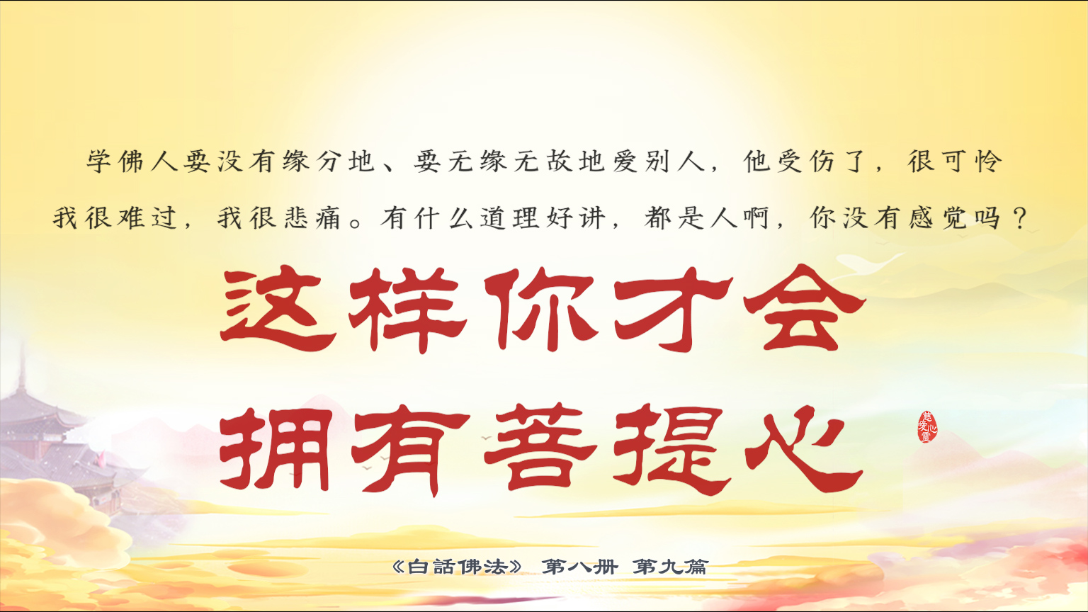 不限会员 8-9-29 学佛人要没有缘分地、要无缘无故地爱别人,他受伤了,很可怜,我很难过,我很悲痛。有什么道理好讲,都是人啊,你没有感觉吗?这样你才会拥有菩提心。【图】