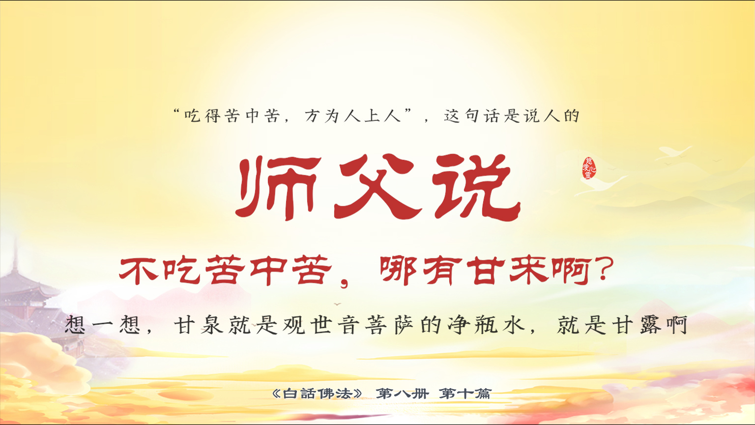 不限会员 8-10-9 “吃得苦中苦,方为人上人”,这句话是说人的。师父说,不吃苦中苦,哪有甘来啊?想一想,甘泉就是观世音菩萨的净瓶水,就是甘露啊。【图】