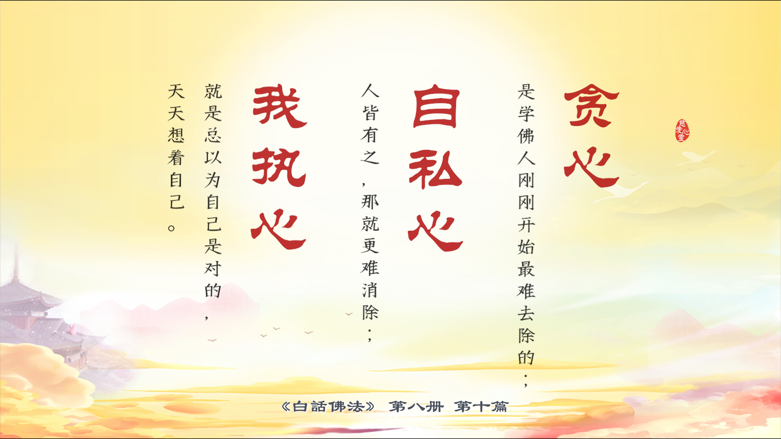 不限会员 8-10-18 贪心是学佛人刚刚开始最难去除的;自私心人皆有之,那就更难消除;我执心就是总以为自己是对的,天天想着自己。【图】