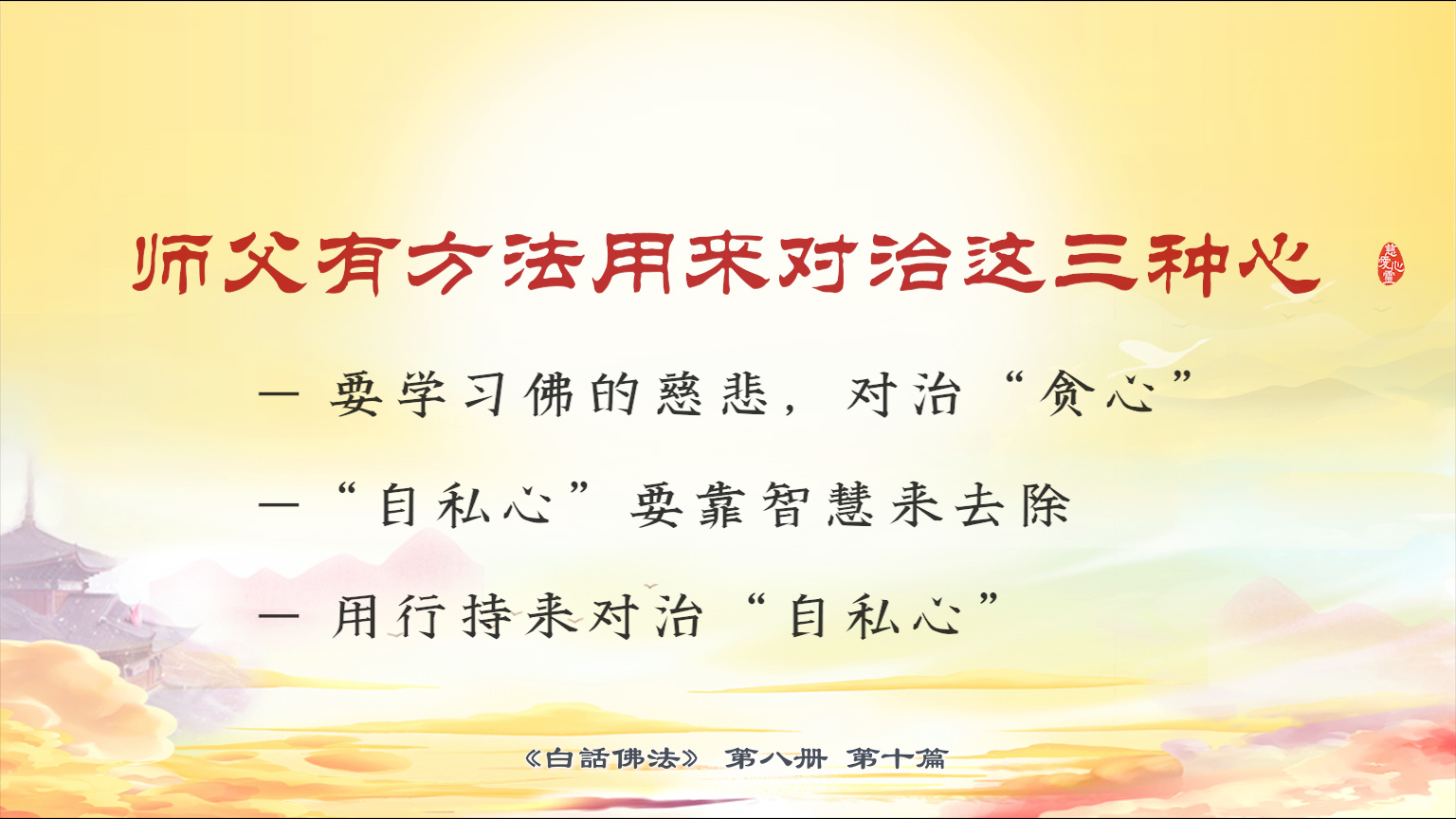 不限会员 8-10-19 师父有方法用来对治这三种心:要学习佛的慈悲,对治“贪心”。“自私心”要靠智慧来去除。用行持来对治我执。【图】