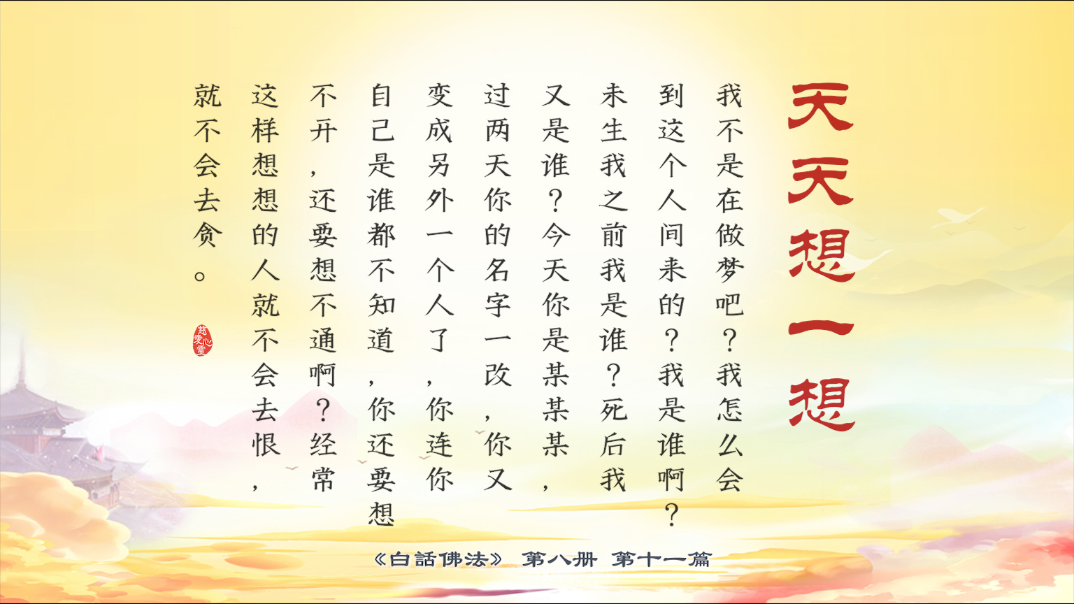 不限会员 8-11-20 天天想一想...怎么会到这个人间来的?我是谁啊?未生我之前我是谁?死后我又是谁?你连你自己是谁都不知道...还要想不通啊?经常这样想想的人就不会去恨,就不会去贪。【图】