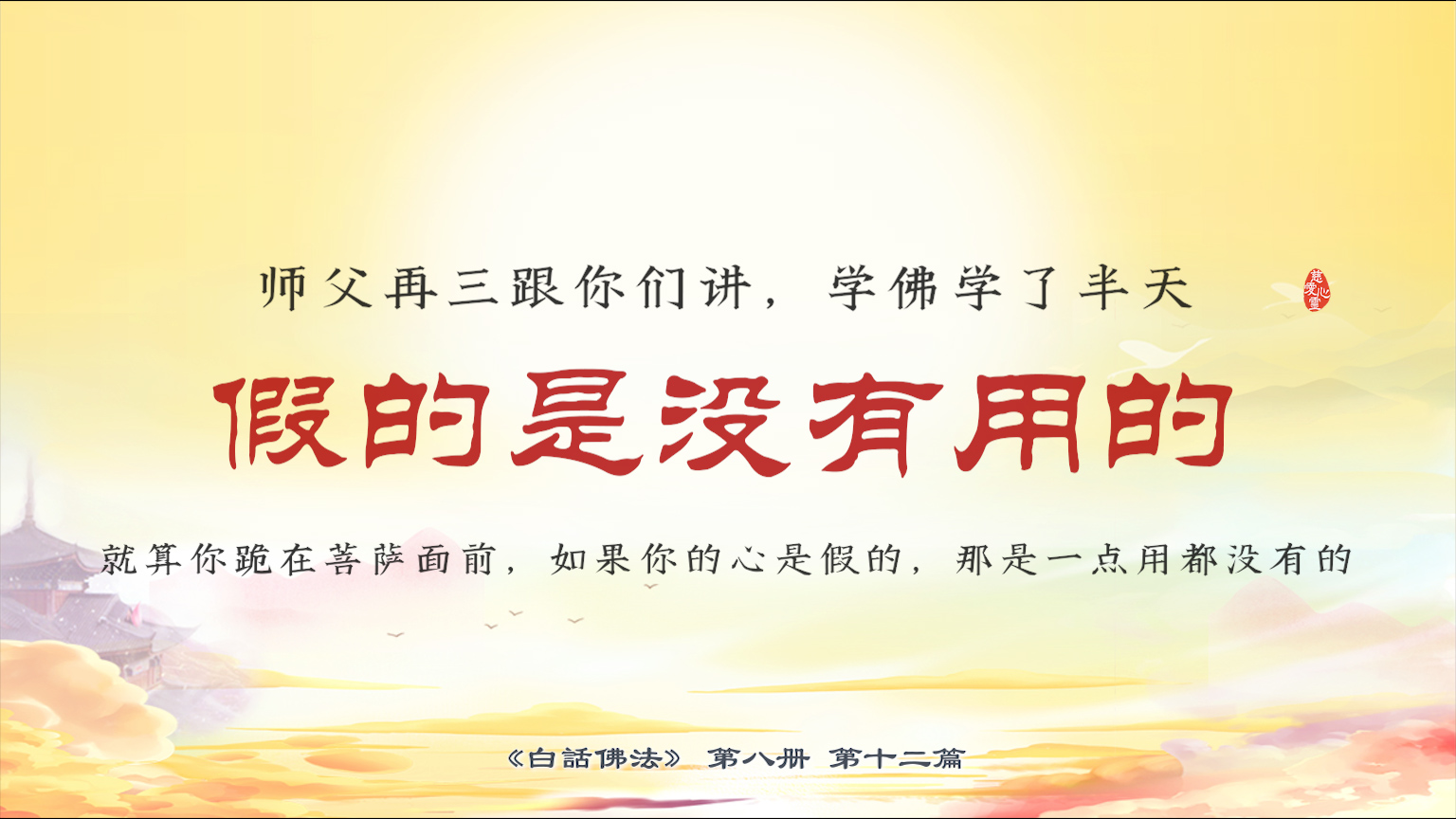 不限会员 8-12-6 师父再三跟你们讲,学佛学了半天,假的是没有用的,就算你跪在菩萨面前,如果你的心是假的,那是一点用都没有的。【图】