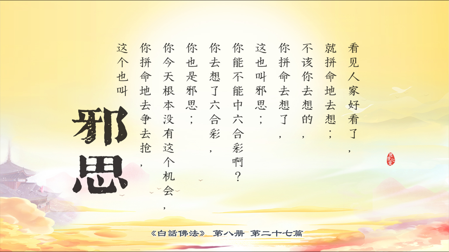 不限会员 8-27-13看见人家好看了,就拼命地去想;不该你去想的,你拼命去想了,这也叫邪思...你今天根本没有这个机会,你拼命地去争去抢,这个也叫邪思。【图】