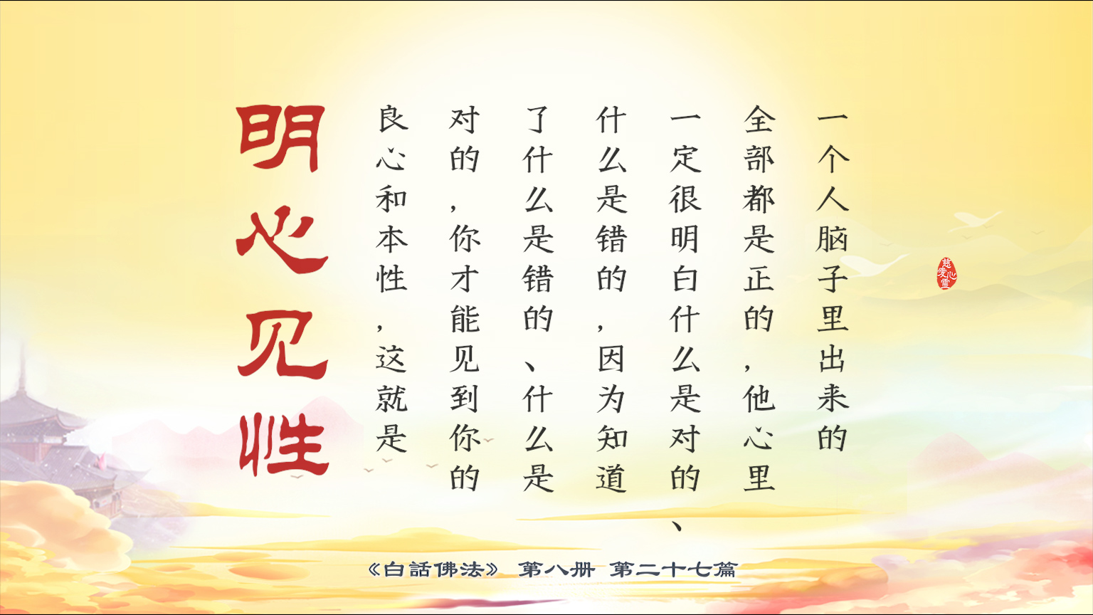 不限会员 8-27-16 一个人脑子里出来的全部都是正的,他心里一定很明白什么是对的、什么是错的,因为知道了什么是错的、什么是对的,你才能见到你的良心和本性,这就是明心见性。【图】