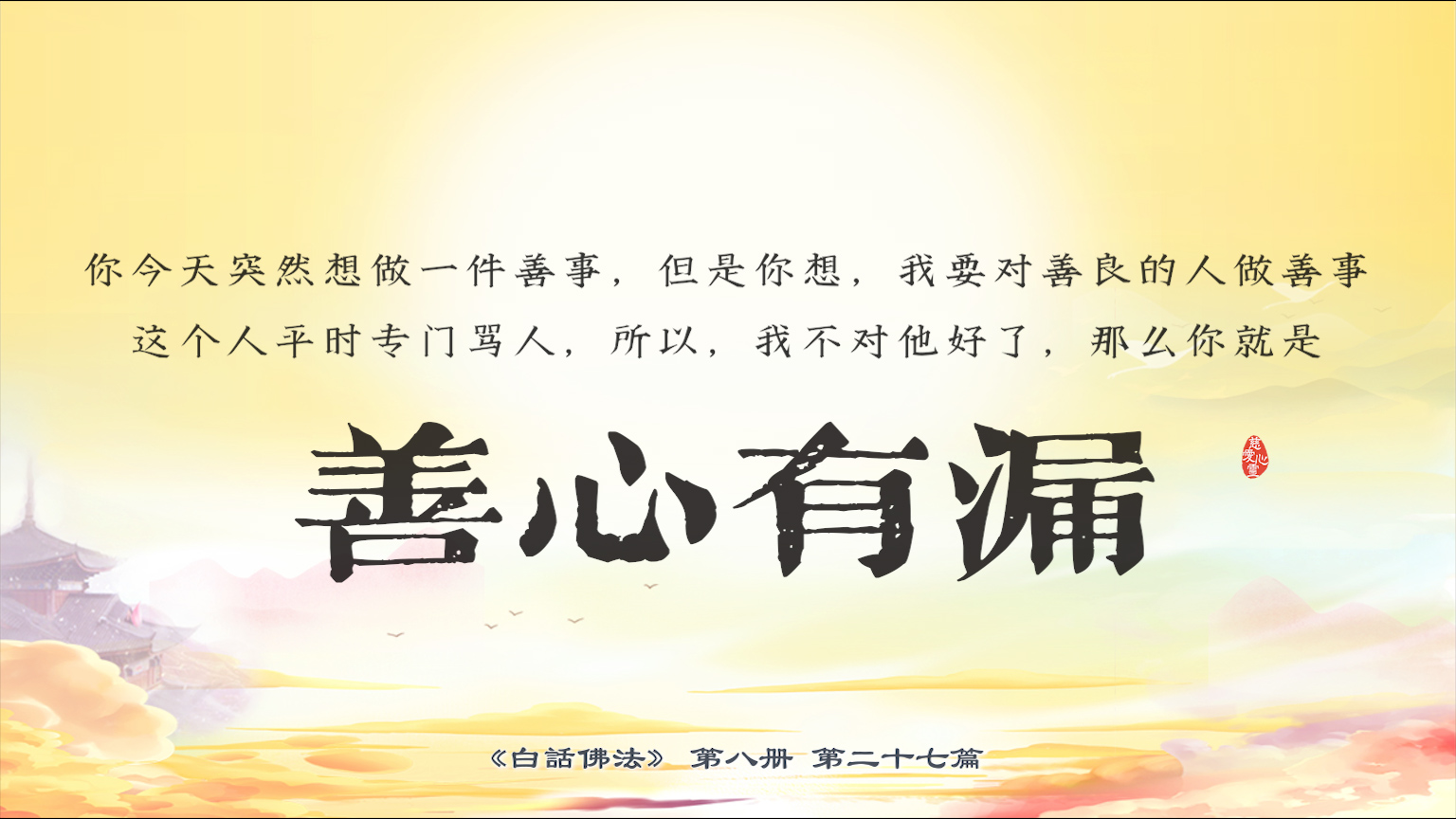不限会员 8-27-24 你今天突然想做一件善事,但是你想,我要对善良的人做善事,这个人平时专门骂人,所以,我不对他好了,那么你就是善心有漏。【图】