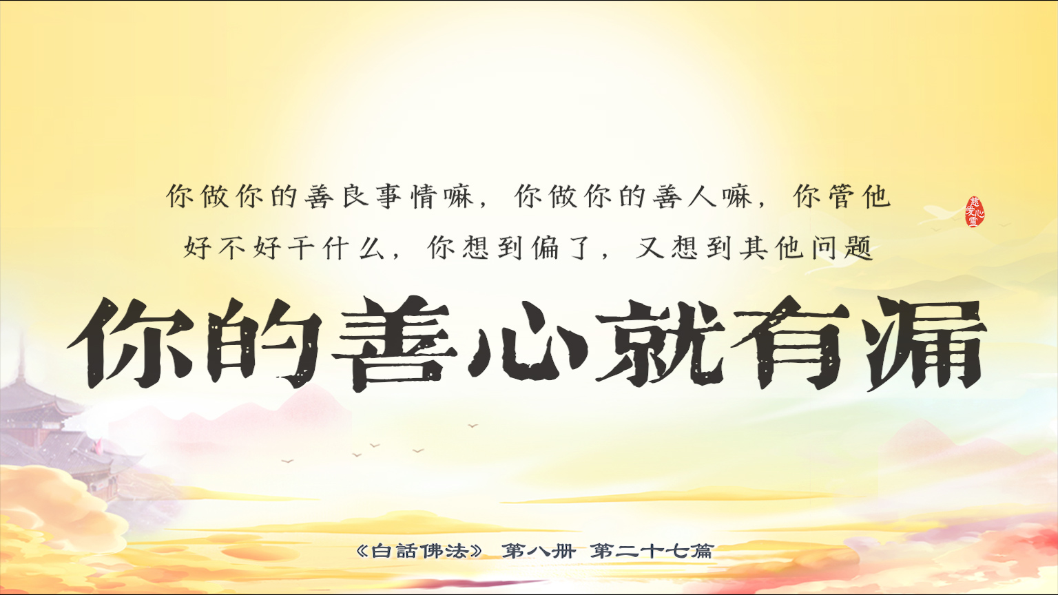 不限会员 8-27-25 你做你的善良事情嘛,你做你的善人嘛,你管他好不好干什么,你想到偏了,又想到其他问题,你的善心就有漏。【图】