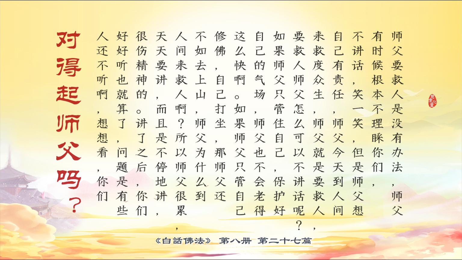 不限会员 8-27-31师父要救人是没有办法,师父有时候根本不理睬你们,不讲话,笑一笑,但是师父想自己有责任,师父今天到人间来救度众生,师父就是要救人,要救人师父怎么可以不讲话呢?【图】